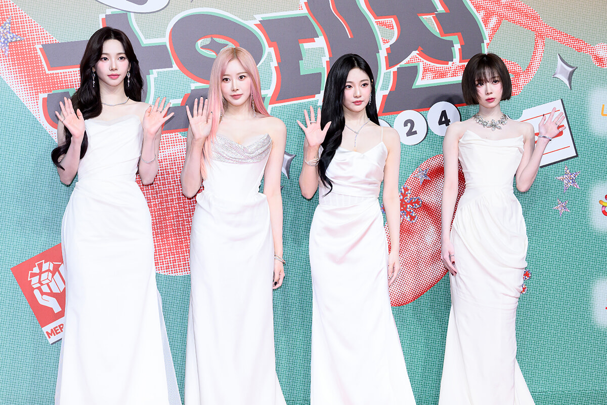 2024年12月25日、韓国の仁川インスパイアアリーナで開催される「2024 SBS歌謡大典」のレッドカーペットに登場したaespa。