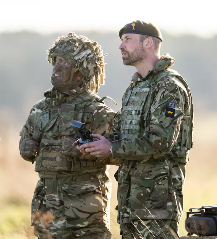 この年、ウィリアム皇太子は公務の数を増やした。これは、英国陸軍のソブリン・ガードの歩兵5連隊のひとつであるウェールズ衛兵隊を訪問したときのもの。(ウィルトシャー、2024年11月26日)