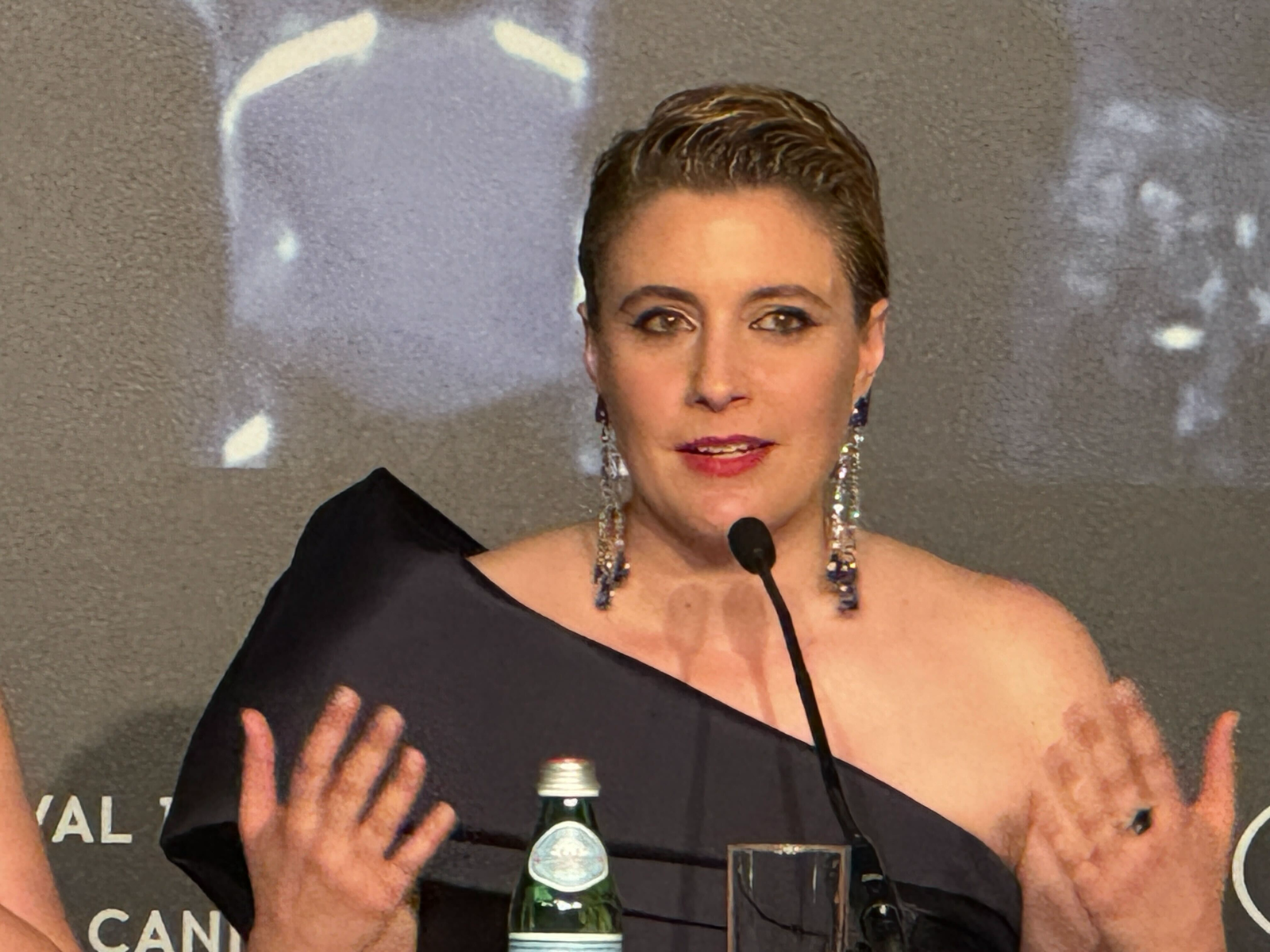 クロージングセレモニーに登場した、審査員長のグレタ・ガーウィグ。©︎Chopard