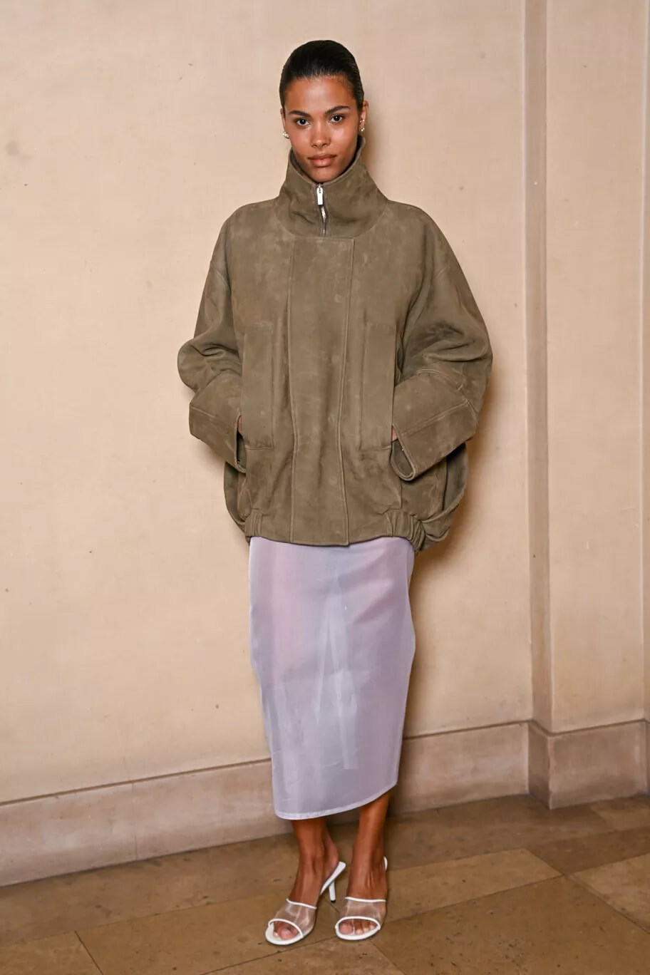 その日、パリの灰色の空の下、華やかな装いを披露していたのは彼女だけではなかった。会場内では、女優ジュディット・ゴドレーシュがオーバーサイズのブラックスーツを着こなし、レティシア・カスタはブラックドレスを、フランソワ・シヴィルは非常にシックなスーツを着ている姿が見られた。また、アリョーシャ・シュナイダーは白いワイドパンツのポケットに手を軽く入れ、颯爽と歩いていた。どのゲストもエレガンスとシンプルさを兼ね備え、このメンズファッションウィーク最終日の締めくくりを印象的に、そして確実にファッション性の高いものにした。