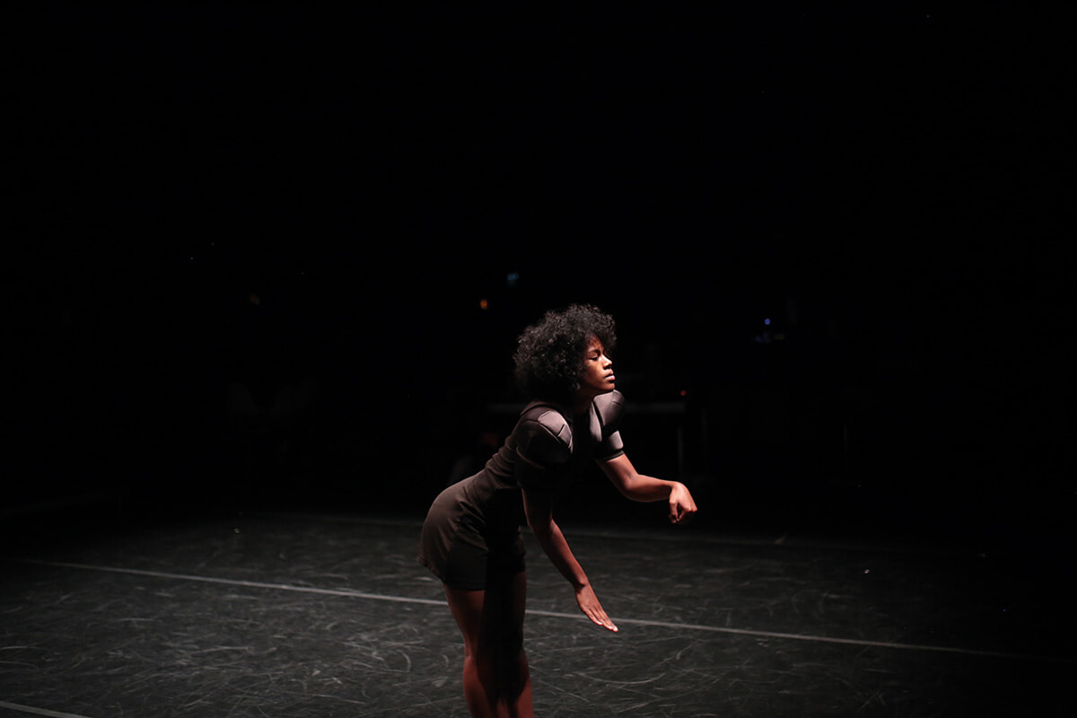 『g r oo v e』:何もない舞台を観客が囲み、エレクトロとノイズのふたりのミュージシャンのライブが空間と身体を切り結び、刻々と景色を変える。振付家ソア・ラツィファンドリアナの生地マダガスカルのダンスの記憶、影響を受けたマディソンのステップやポッピンを引用しながら、空間にグルーヴを立ち上げていくプロセスが見事なソロ。© Van Cleef & Arpels SA – 2023 – Lara Gasparotto