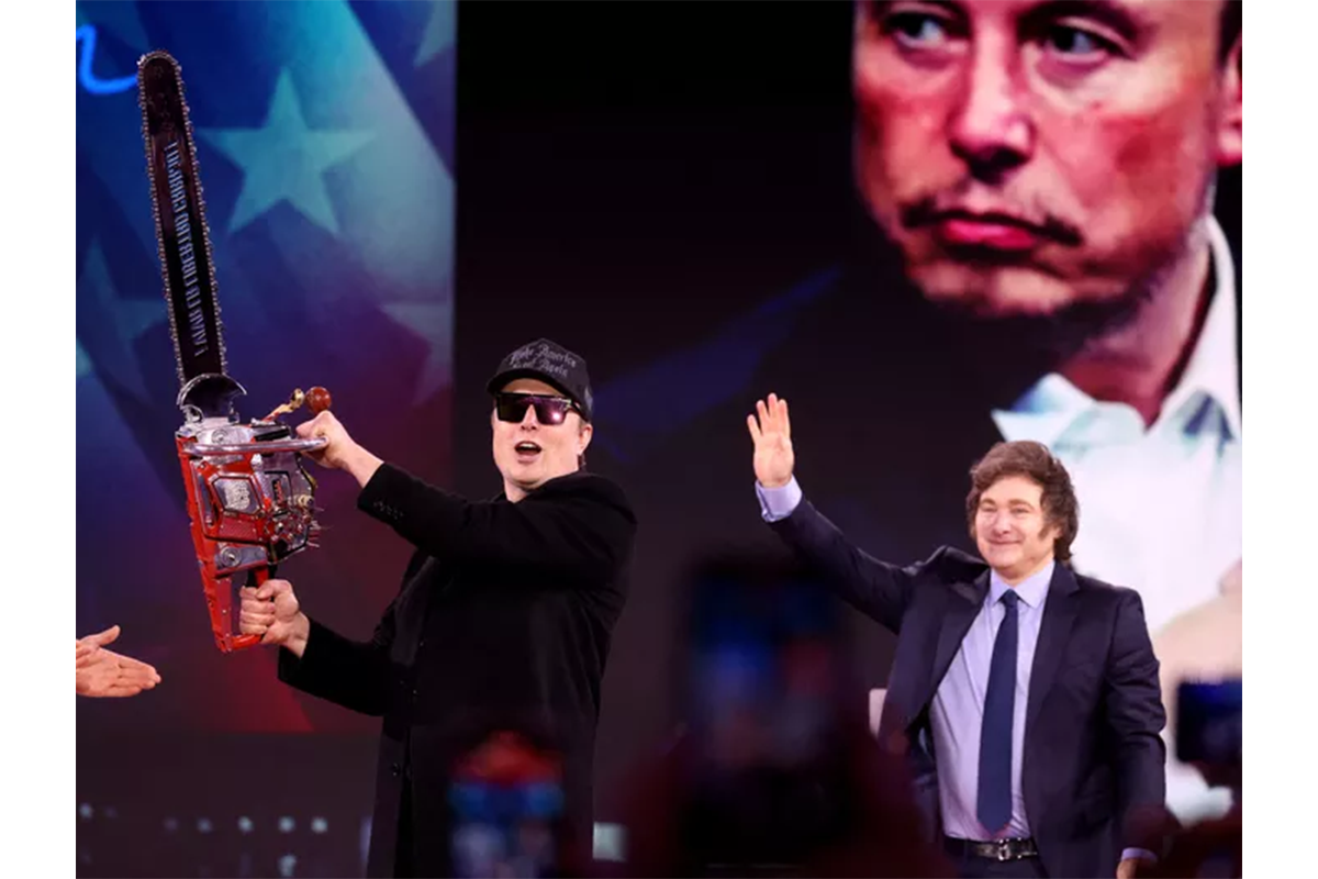 2025年2月20日、ゲイロード・ナショナル・リゾート&コンベンション・センターで開催されたPAC(保守派政治行動会議)に、彼はサプライズ登場。そしてわずか30分後、真っ赤なチェーンソーを振り回し始めたのだ。このチェーンソーは、アルゼンチンの”チェーンソー大統領”ことハビエル・ミレイから贈られたもので、マスク率いる省庁による政府予算の大幅削減を象徴するジェスチャーとも解釈できる。