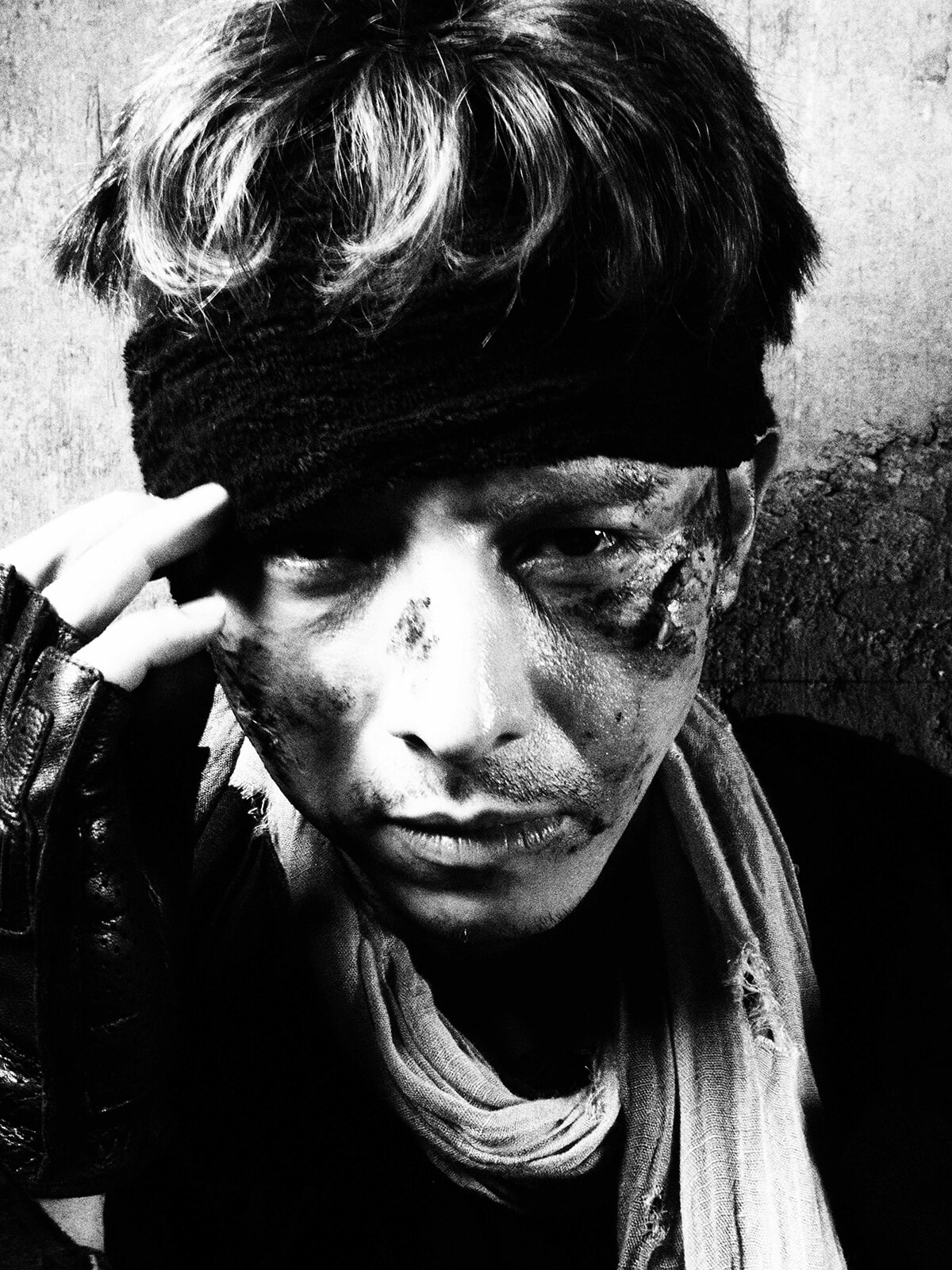 この撮影現場で、齊藤は3人をレンズに収めた。PCから指示するAI監督に導かれるまま自身のカラダにタトゥを彫る松坂桃李。コミカルな表情を交えながら自身の役にのめり込み、狂気と正気の境目を「正気の延長」で演じ切っている。