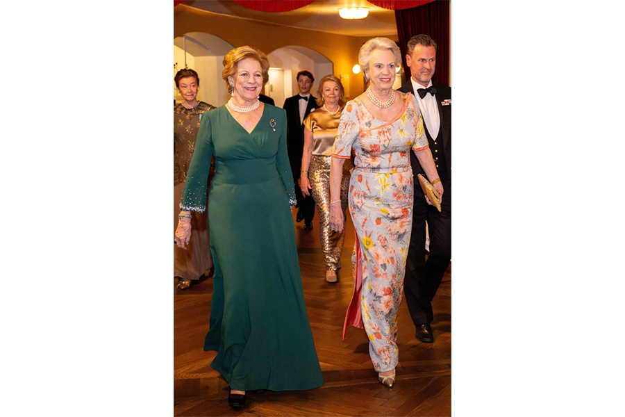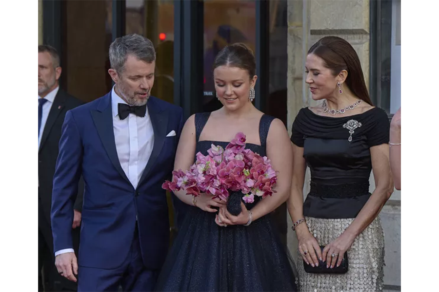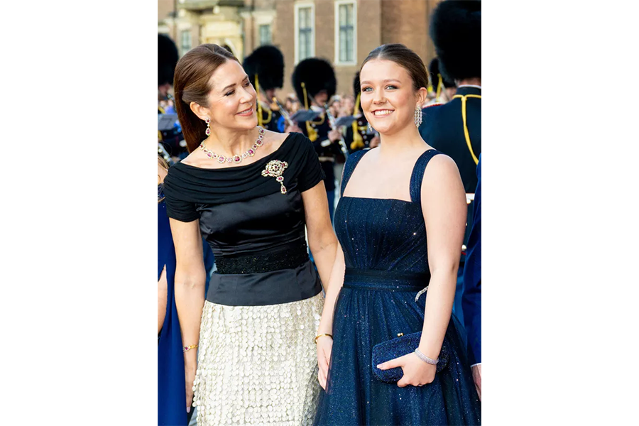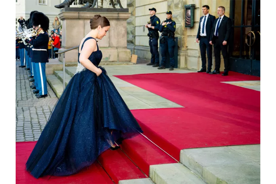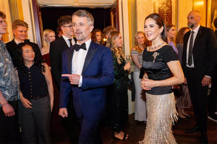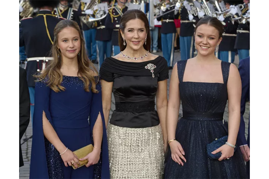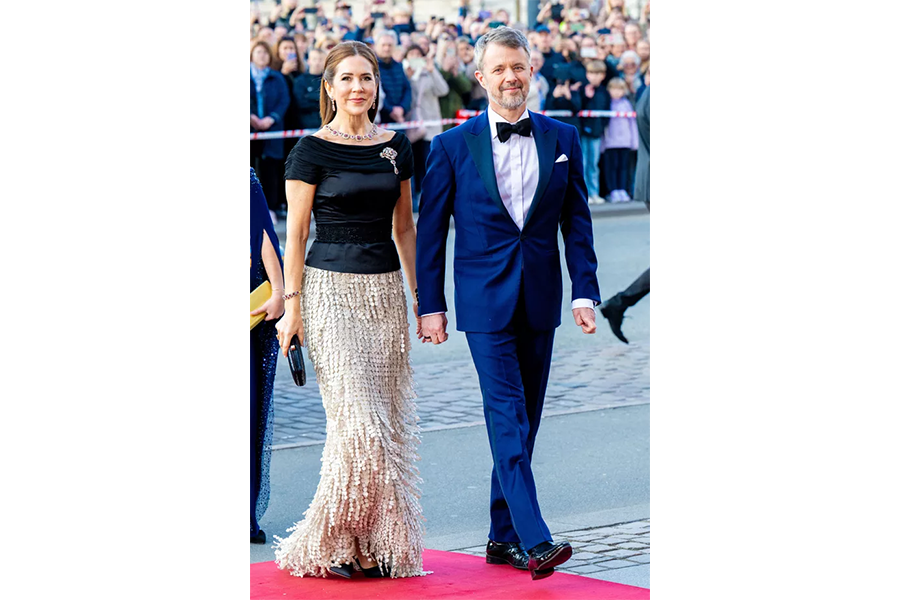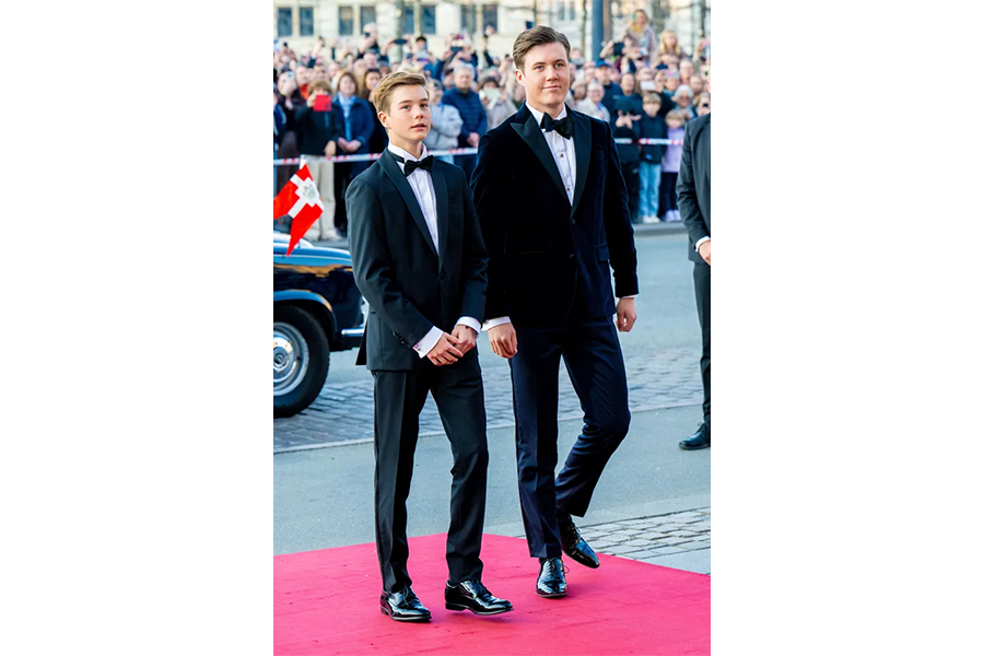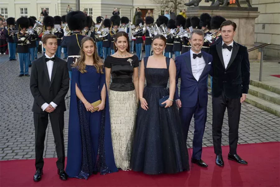 コペンハーゲンのデンマーク王立劇場の前の広場にはレッドカーペットが敷かれ、国王夫妻とその他の子どもたち、クリスチャン皇太子、ヴィンセント王子、ヨセフィーネ王女がカメラマンに向かって笑顔を見せた。ふたりの娘は、ネイビーブルーの衣装で、父親と長男とお揃いの色でコーディネートしていた。一方、メアリー王妃はマレーネ・ビルガーの黒と銀色のドレスを選び、最年少の息子とコーディネートを合わせた装いだった。