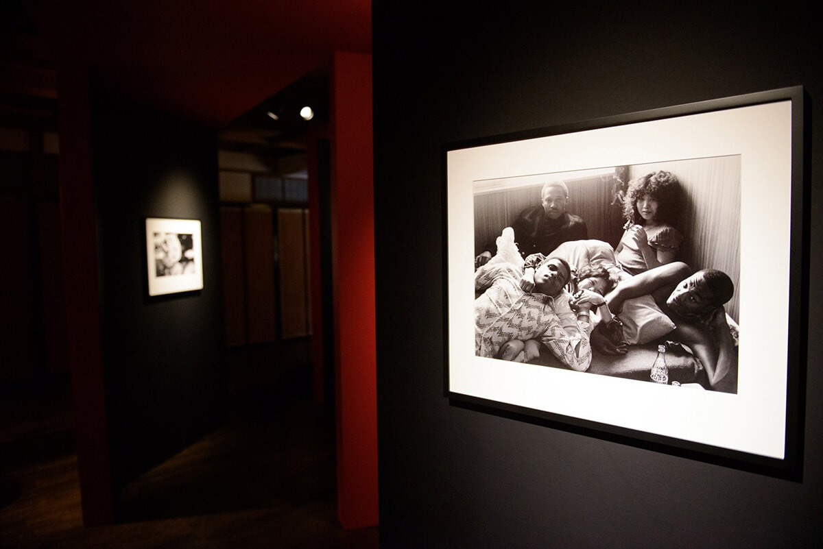 誉田屋源兵衛 竹院の間を会場とする『石川真生 アカバナ』Presented by SIGMA。会場手前には、1975年から77年にかけて撮影された最初期のシリーズ「赤花–アカバナ」を、会場奥には、昨年に与那国島と石垣島で撮影した「大琉球写真絵巻」の新作を展示する。人を見つめ、愛する一方で、個人を蔑ろにする権力を憎み、抵抗の意志を表明する。その石川の姿勢が浮かび上がってくる展示構成だ。