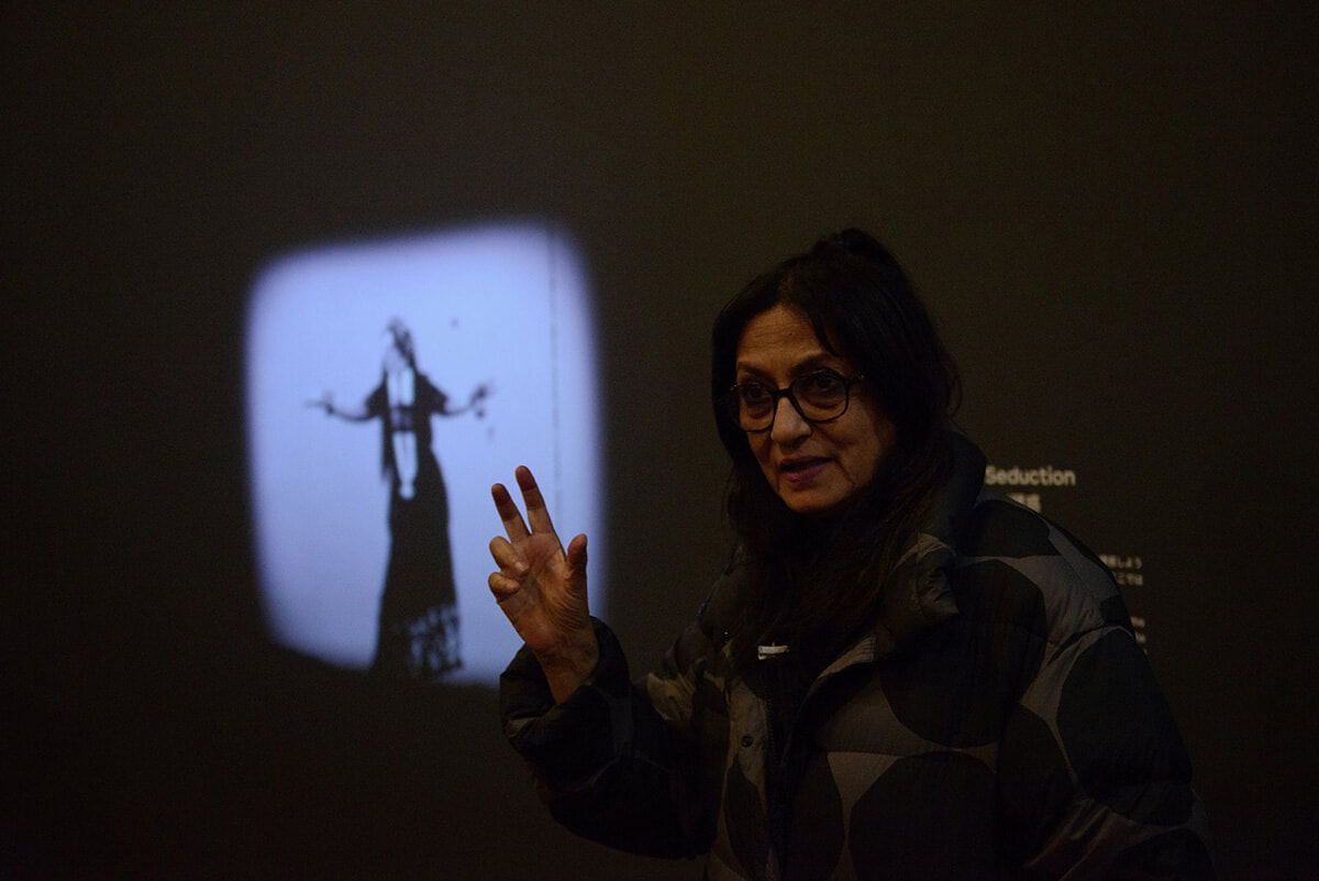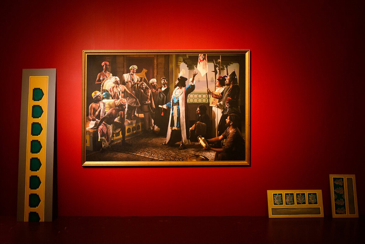 『ラーマーヤナ』などのインドの古典をモチーフとする作品の数々が展示され、ハイライトとなるのが、近年テート・モダンで展示されて注目を集めた『The Arrival of Vasco da Gama』。ヴェローゾ・サルガドが描いた絵画をもとに、ポルトガルの探検家とインド南西部沿岸にあるカリカットの王の対面を再解釈する。圧倒的に数学が進歩していたインドで、航海学がどの程度ヨーロッパに先んじていたのかなどへの視点も交えると同時に、作品を撮影する際に制作されたセットなども併せて展示され、制作プロセスへの想像を刺激する展示内容となっている。