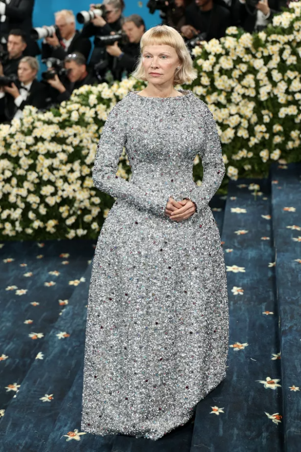 パメラ・アンダーソンはトリー・バーチとパンドラのジュエリーを身に着けて、2025年METガラに登場。(ニューヨーク、2025年5月5日)photography: Michael Loccisano/GA / The Hollywood Reporter via Getty
