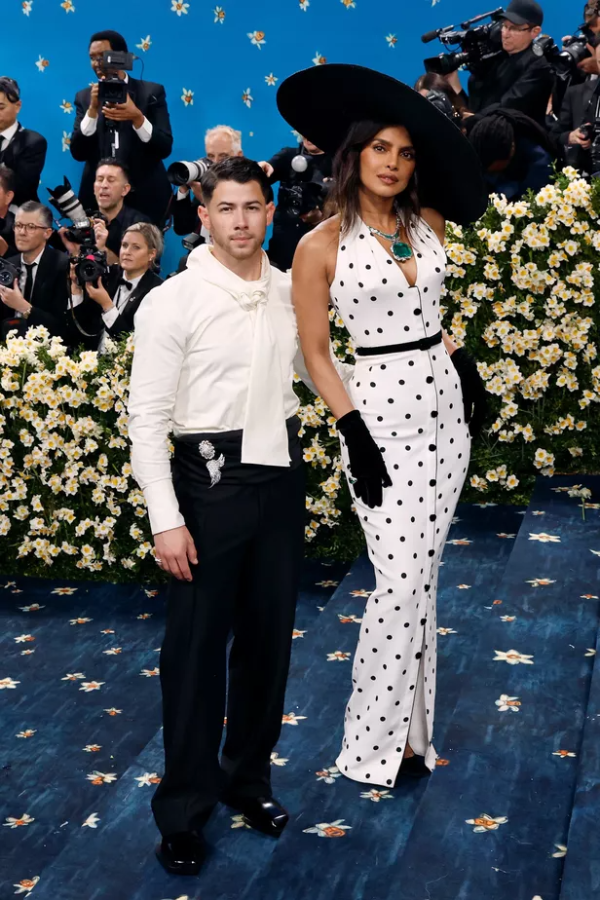 ニック・ジョナスはルブタン、ティファニー、そしてジャガー・ルクルトを身につけ、プリヤンカー・チョープラーはブルガリのジュエリーをまとって2025年METガラに登場。(ニューヨーク、2025年5月5日)photography: Taylor Hill / Getty Images