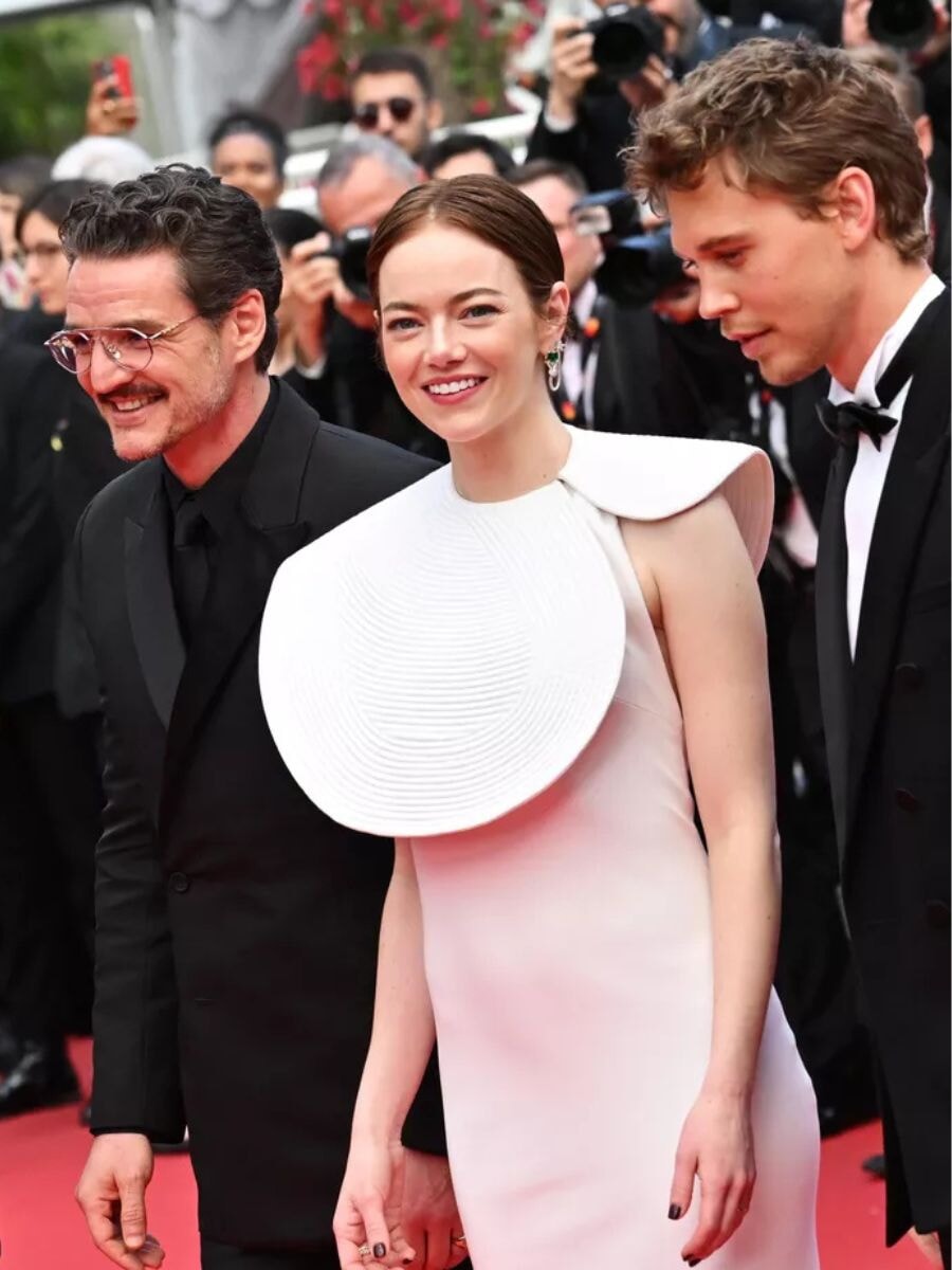 5月16日、バズ・ラーマン監督の伝記映画『エルヴィス』でエルヴィス・プレスリーを演じたオースティン・バトラーと、2018年に映画『女王陛下のお気に入り』を上演して以来クロワゼットに戻ってきたエマ・ストーンが、パレ・デ・フェスティバルのレッドカーペットでセンセーションを巻き起こした。ストーンは、アカデミー賞授賞式で披露したのと同じ可愛らしい「ピクシーカット」の、特注のルイ・ヴィトン XXL カラーの白いドレスを身にまとい、バトラーはサンローランの蝶ネクタイをした黒いタキシードを着ていた。ふたりのスターは、第78回カンヌ国際映画祭で最も期待されていた作品のひとつ、アリ・アスター監督のダーク西部劇『エディントン』を披露するために出席した。同映画のキャストであるペドロ・パスカルとホアキン・フェニックスもレッドカーペットに到着した。