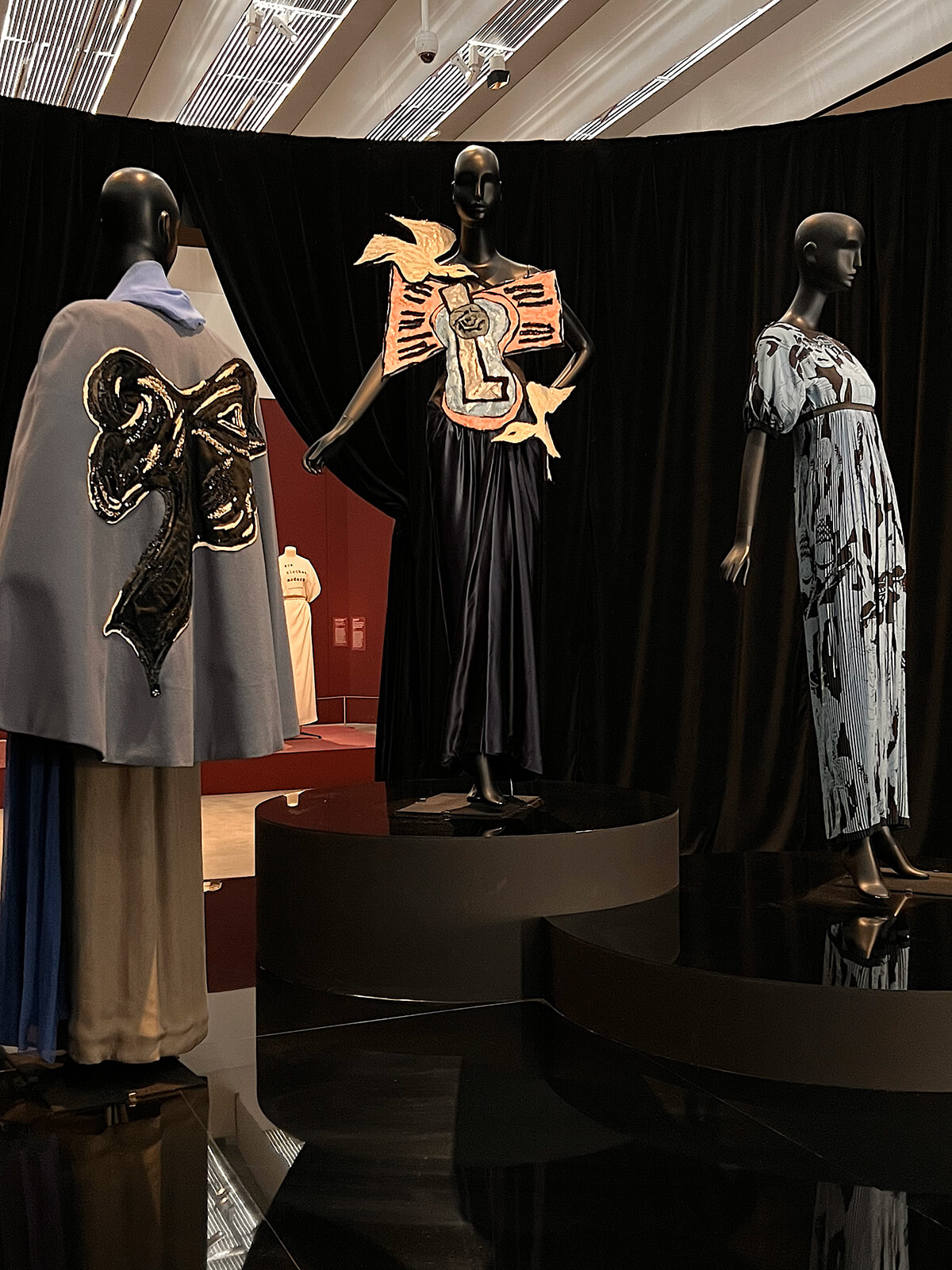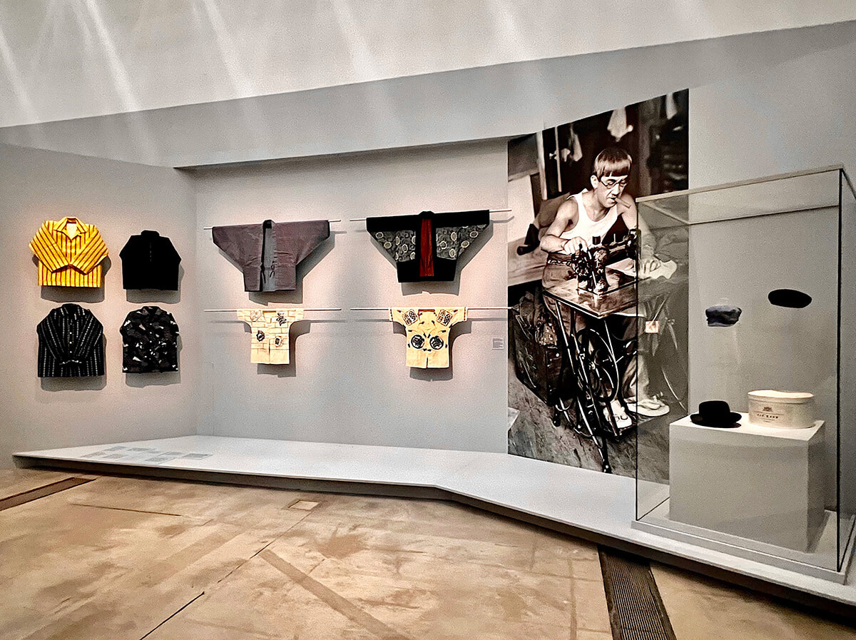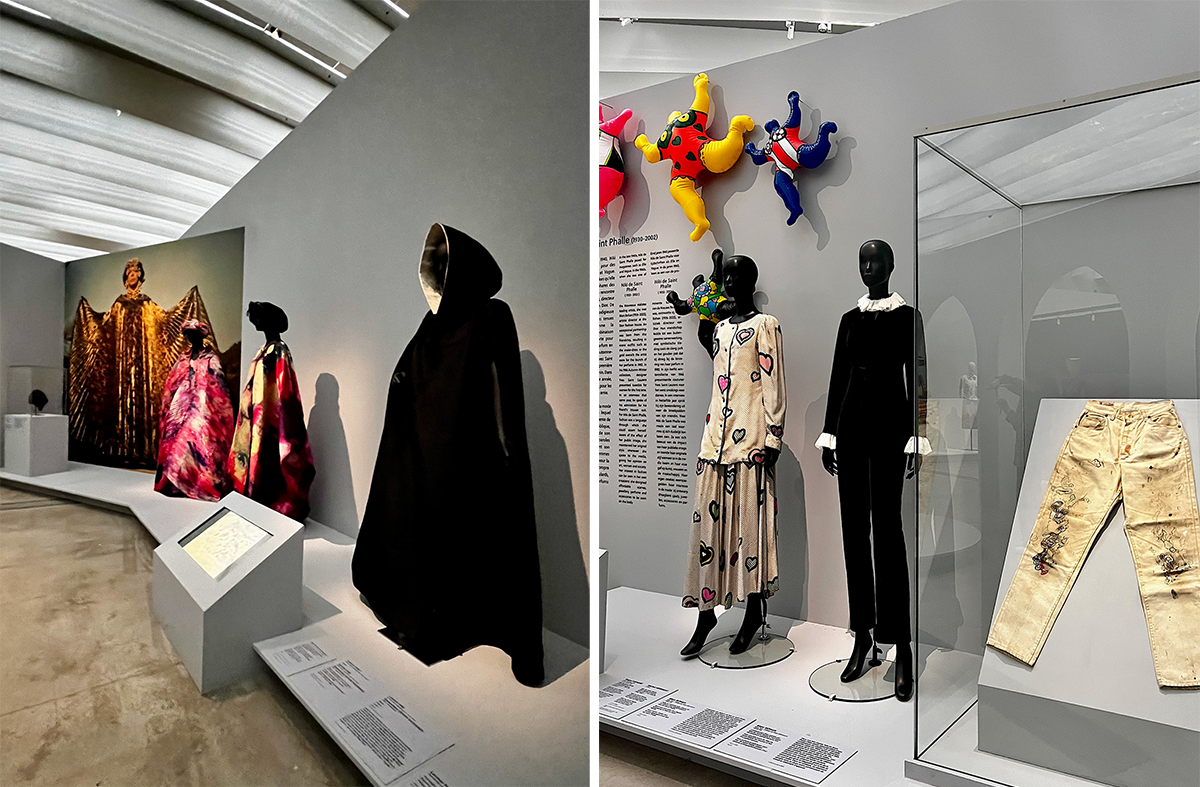 アーティストとクチュリエの関係を扱うテーマではニキ・ドゥ・サンファールがクローズアップされ、同じ部屋ではレオナール・フジタ(藤田嗣治)がミシンを踏む写真が掲げられている。これは自分のためにデザインしたシャツを縫っているところだ。彼は自分だけのために作り、タグもつけていたけれど販売は一切していなかったという。展覧会を締めくくるのは、政治的意識の高いアーティストたちによる作品としての衣服だ。この特別展は多くの要素が盛り込まれ、また時代順の展示でもないので少々頭の中が混乱するかもしれない。リラックスして、鑑賞しよう。