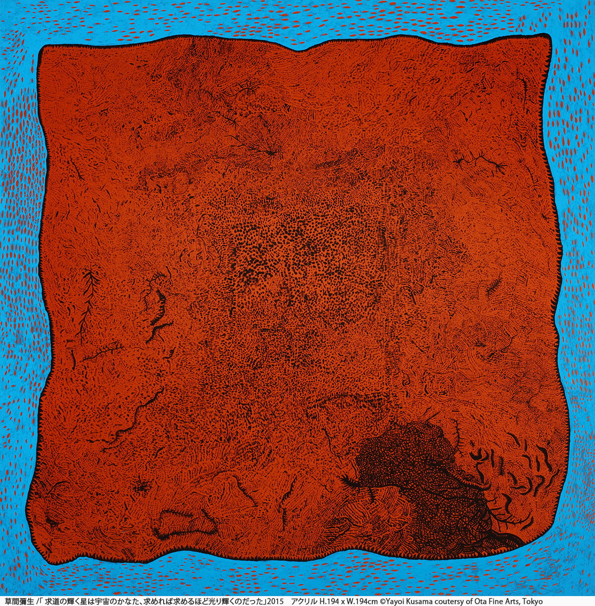 1957年渡米以来、数々の大作を制作し続け、世界に向けて生命の謳歌を発信する草間彌生と3名の作家によるダイアローグ展。戦後、高度経済成長期に大量消費社会の時代精神を共有した三島喜美代。自身の負の記憶と人間の闇を混淆した美が草間の世界観と交錯する谷原菜摘子。太古の楔形文字のような無数のかたちが宇宙を形成する作品が、草間の自然観と通底する坂上チユキ。彼女たちの対話により構成される本展は、いまを生きる者のビジョンにも深い示唆を与えるはずだ。