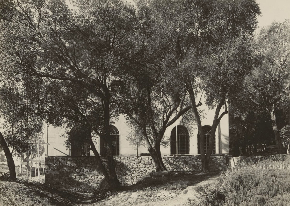 小高い丘の上、オリーブの木々に囲まれて佇んでいるのが「ラ パウザ」だ。エントランス前には、巨大なオリーブの木が生えている。シャネルは敷地内の木々を一本たりとも伐採することなく、手を加えようとしなかった。この木々が自分を見守ってくれていると感じ、自然のままであることを大切にしていたのだという。