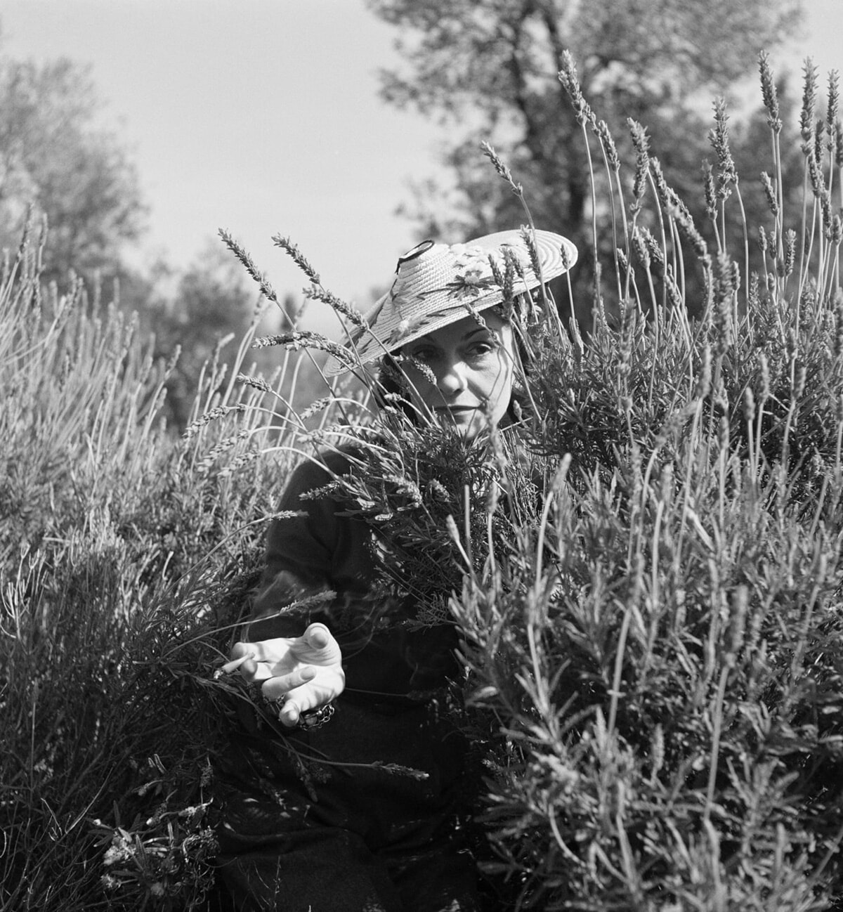 野趣溢れる自然な庭を愛し、ラベンダーの剪定にも強くこだわったというシャネル。photography: Roger Schall © Schall Collection