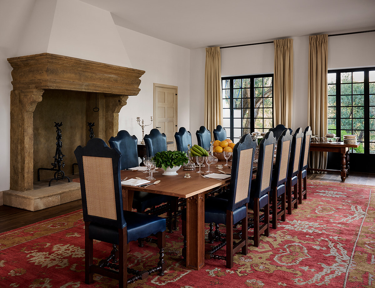 ダイニングは中庭の横に位置。暖炉やラグで温もり溢れる空間。Obligatory terms: © CHANEL Photographer: Jason Schmidt