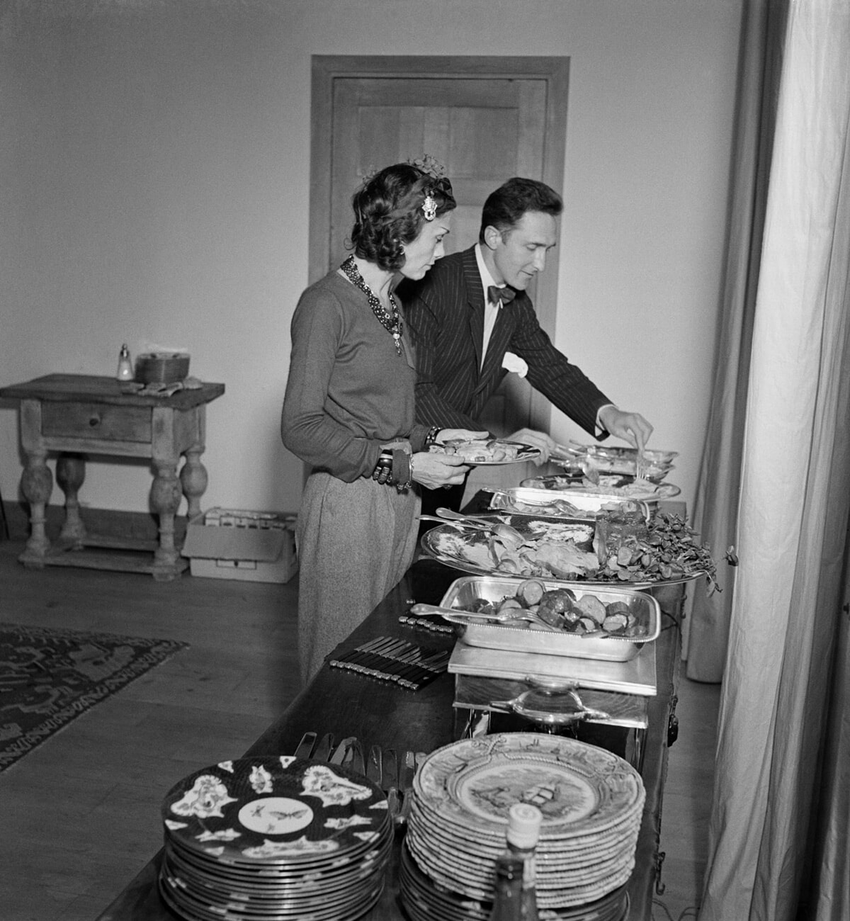 ブッフェ形式で供された食事を立食スタイルで楽しんでいたという。photography: Roger Schall © Schall Collection
