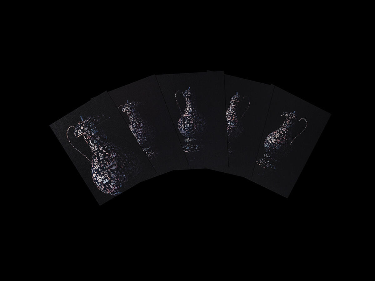 会場ではこの思いのカケラをお持ち帰りいただきたいと、ポストカードセットも手に取っていただくことができます。新しい形で私たちの中に生きていく本作品が、正倉院宝物の魅力と手仕事の価値を届けるきっかけになればと願っています。