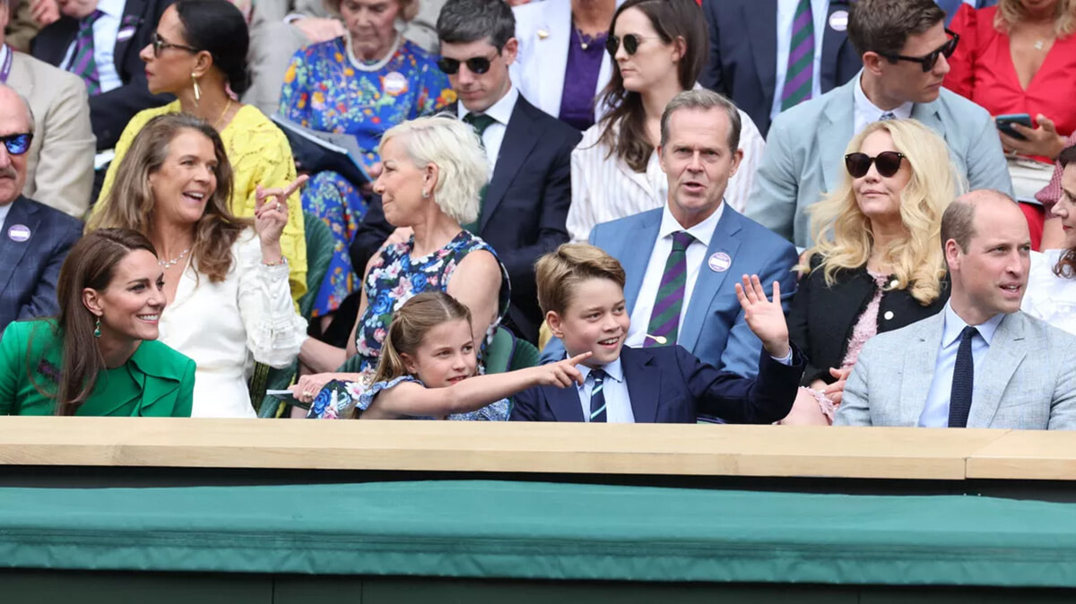 ウィンブルドンにて、キャサリン皇太子妃とウィリアム皇太子、ジョージ王子とシャーロット王女がロイヤル・ボックスに登場。(ロンドン、2023年7月16日)photography: Lock Stephen/I-Images/ABACA