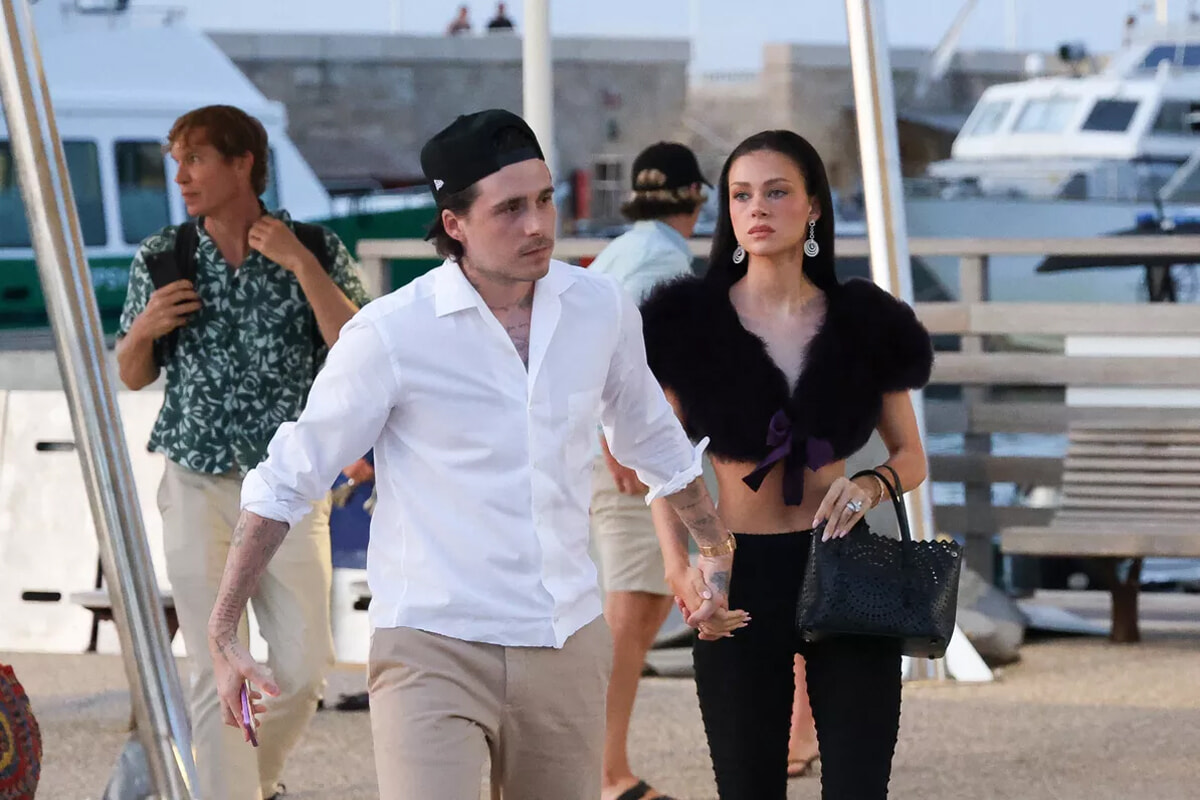 ここ数日、ブルックリン・ベッカムと妻のニコラ・ペルツは、彼女の億万長者の父親が快く貸してくれたヨットで、フレンチ・リヴィエラのターコイズブルーの海を巡る日差しあふれるバカンスを満喫している。デビッド・ベッカムの息子であるブルックリンとモデルのニコラは、特にサントロペの港に立ち寄り、手をつないで散歩しているところを写真に撮られた。彼は白いシャツにベージュのパンツ、サンダルにソックスというシンプルな装いで、彼女はブラウンのロングヘアにマッチした、スタイリッシュな黒のセットアップを身にまとっていた。