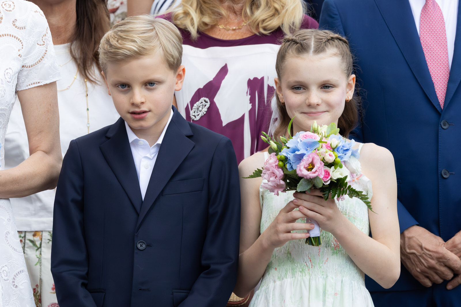 SNSに投稿された写真では、9歳のジャック公子とガブリエラ公女が、ふたり並んだ姿や両親と一緒に写る姿が見られた。ふたりはともに通学先である「フランソワ・ダジーズ=ニコラ・バレ学院(l’Institution François d’Assise-Nicolas Barré)」の校章が入った赤いポロシャツの制服を着ている。この学校はモンテカルロ地区北部に位置する。ガブリエラ公女は黒いスカート、ジャック公子は黒いズボンを身につけ、兄妹は手を取り合っていた。