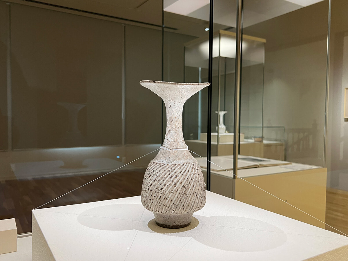 手前:ルーシー・リー《白釉鎬文花瓶》 1976年頃 国立工芸館蔵