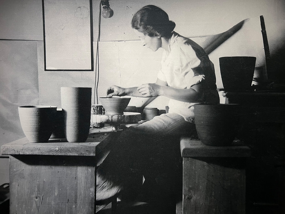 ウィーン時代、轆轤に向かって制作をするルーシー・リー(1930年代) Sainsbury Centre, University of East Anglia