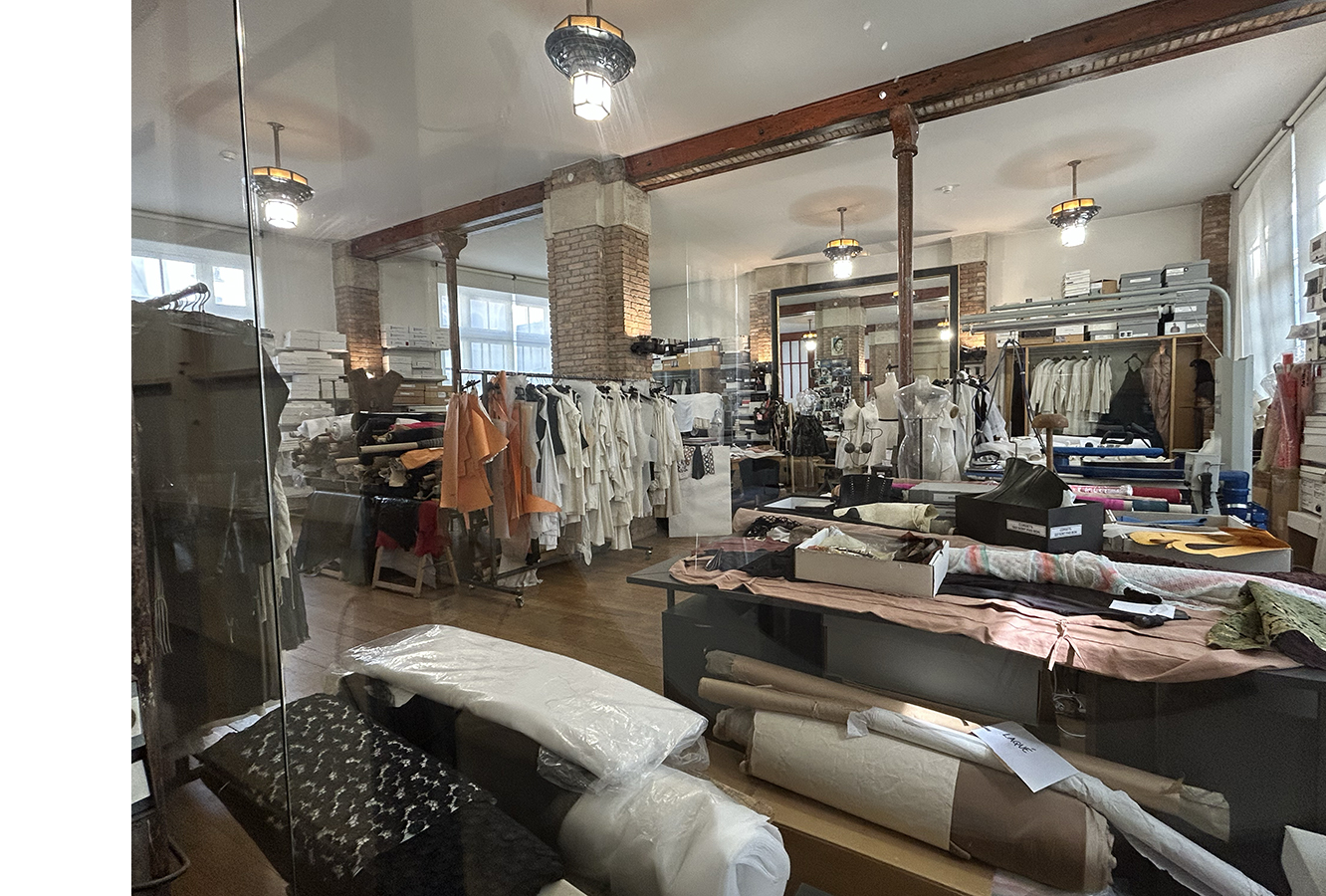 アライアが亡くなってから手つかずのアトリエには試作品やパターン、布地がそのままに。