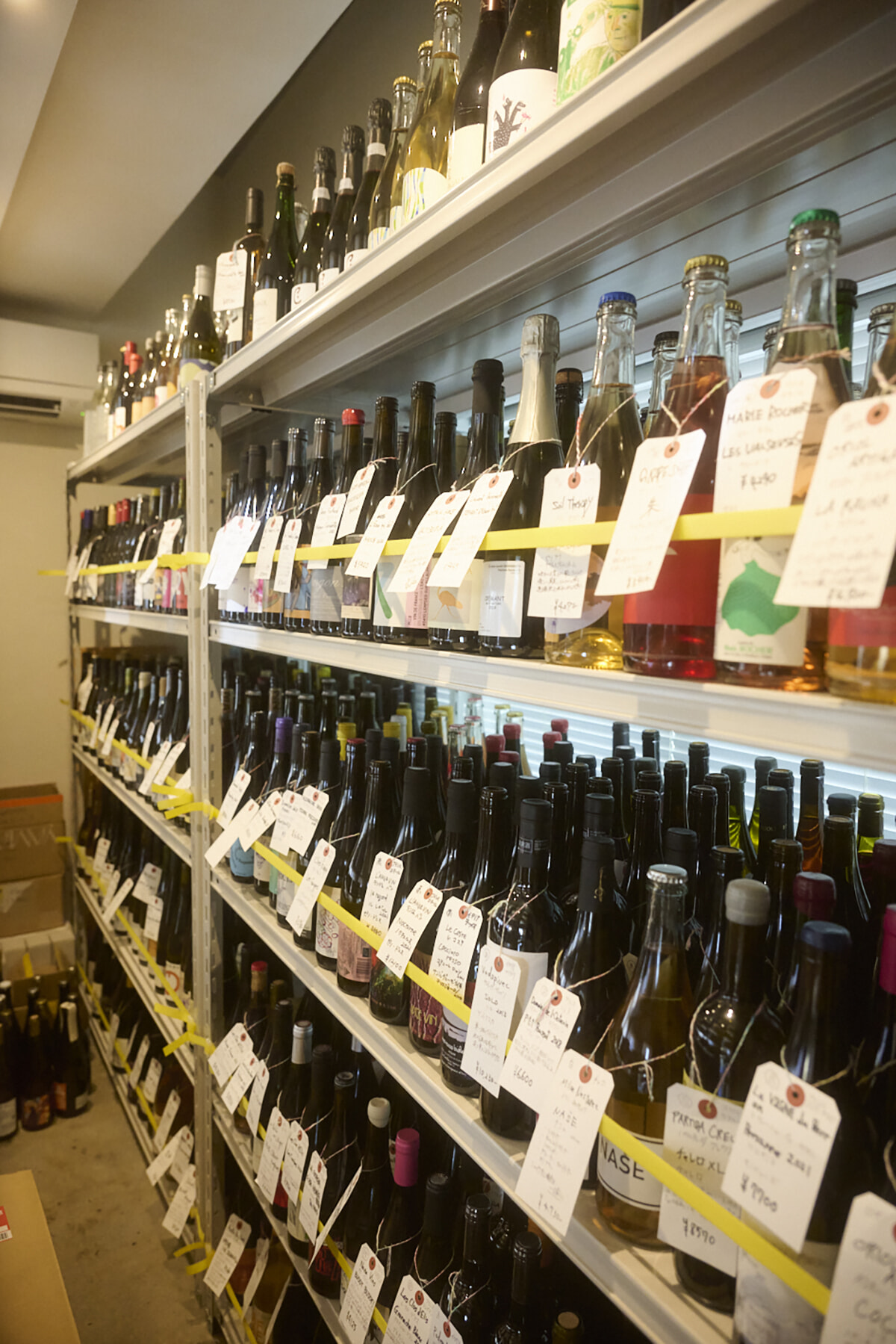 ワインに掛けられた書評のような手書きのタグが印象的。