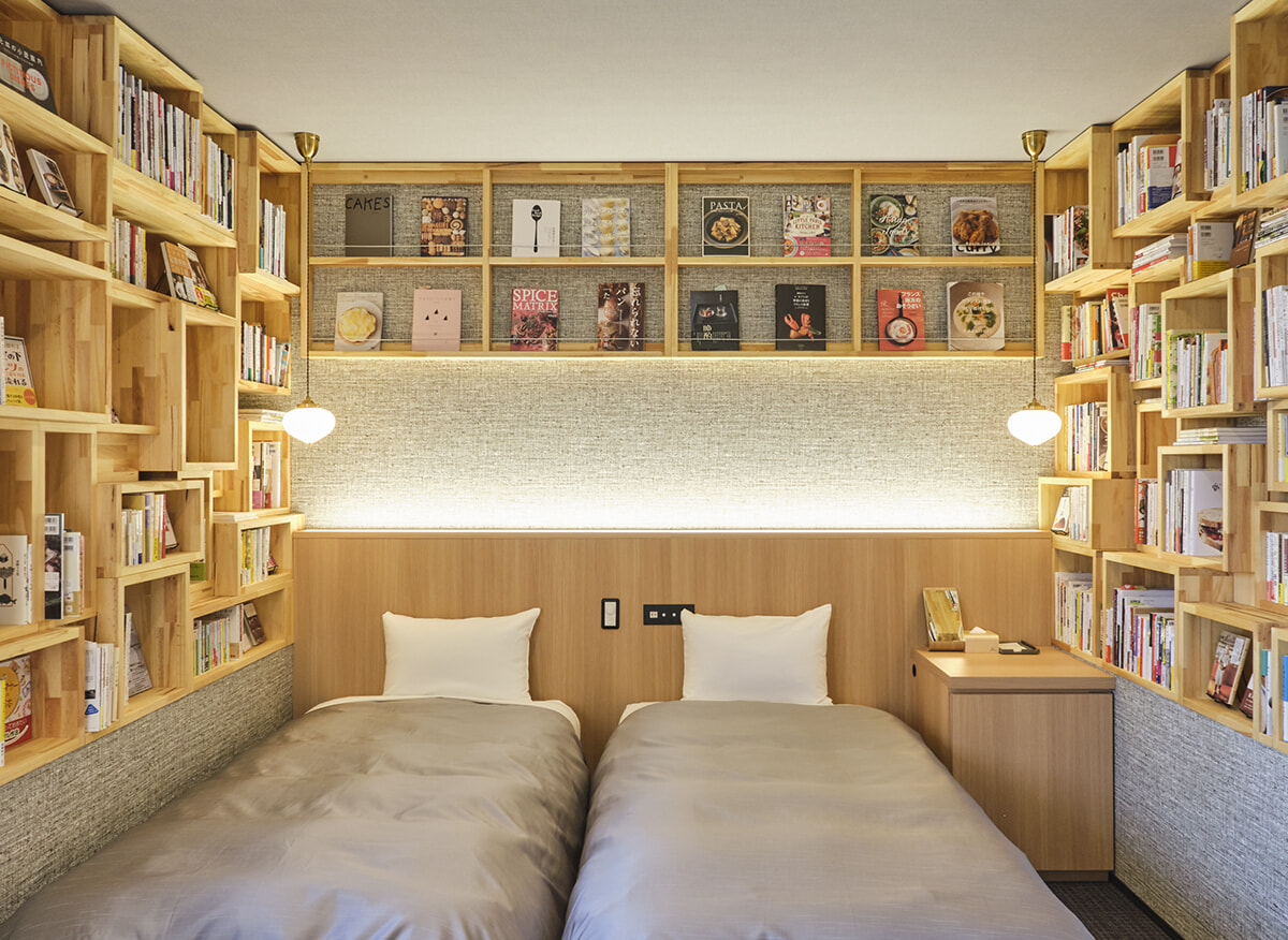 部屋ごとにコンセプトが異なる。508号室は「食」がテーマ。レシピ本や食エッセイがずらり。