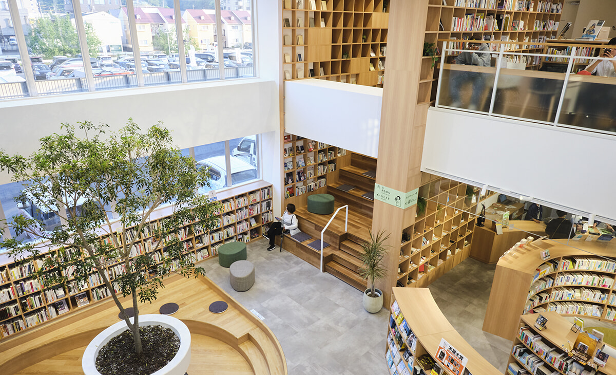 1~2階の書店は約2万冊の本が並ぶ。
