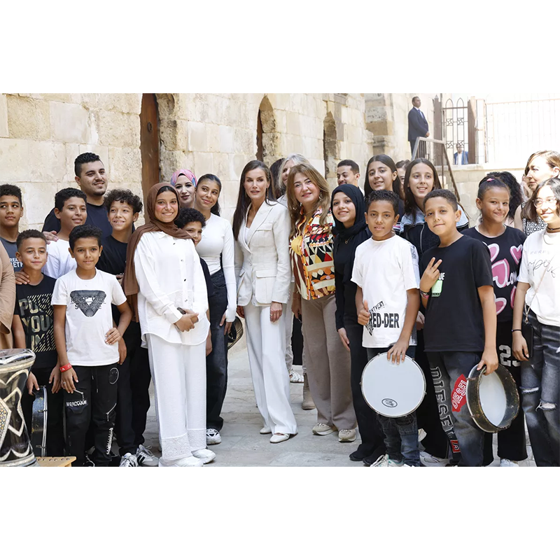 エジプトのカイロにある墓地「死者の街」にあるスルタン財団での会合に出席するレティシア王妃。(カイロ、2025年9月18日)photography: Andrews Archie/ABACA