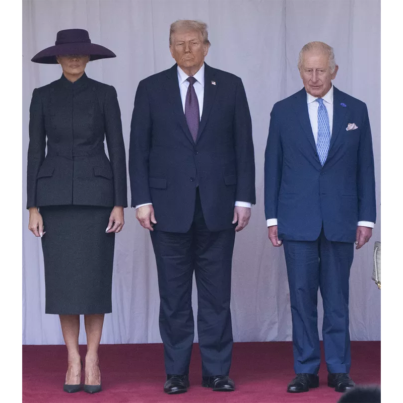 こうしてこの日、ウィンザー城ではメラニア夫人の紫の巨大ハットが存在感を示し、キャサリン皇太子妃もかすむほどだった。その大きさもさることながら、顔の半分が隠れていたことから、この日の公式写真で正面を向いたメラニア夫人の目が見えず、なんとなくミステリアスな雰囲気が漂っていた。