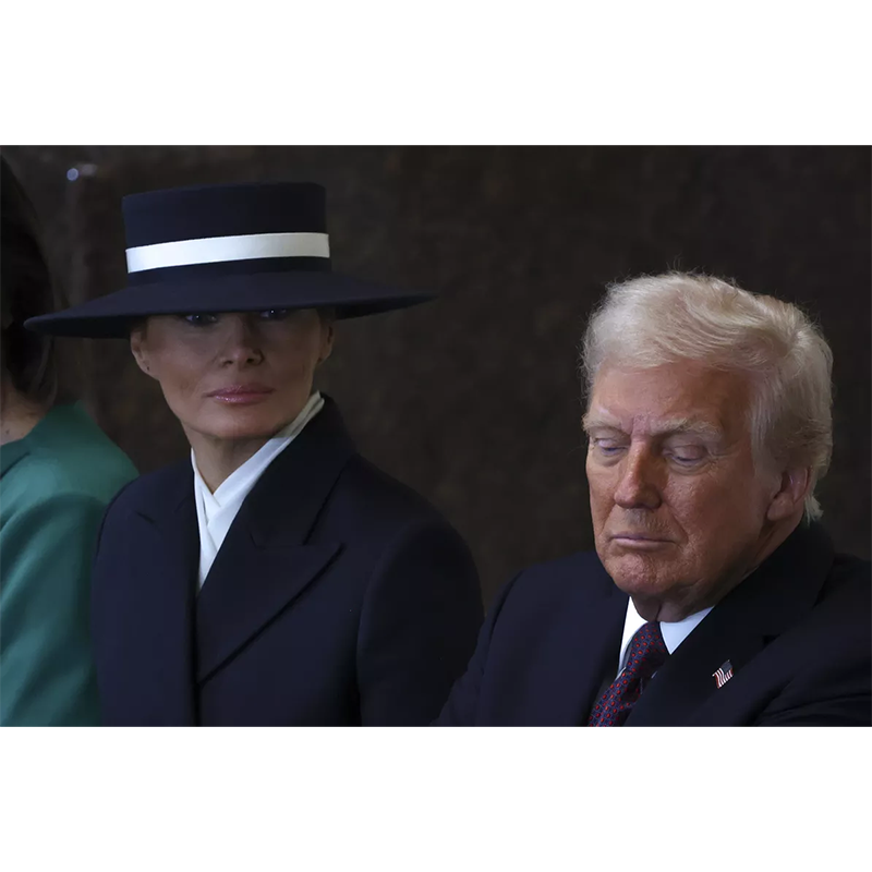 55歳になったメラニア夫人は帽子をますます愛用しているようだ。振り返れば2025年1月20日、トランプ大統領の就任式の日もそうだった。メラニア夫人はアメリカ人デザイナー、アダム・リペスによるニューヨークファッションに身を包み、米議会議事堂にやってきた。ネイビーウールのコートにペンシルスカート、アイボリーのクレープシルクのブラウスのすっきりしたデザインの服だ。しかしながらこの日の主役は帽子だった。エリック・ジャヴィッツの紺&白のカンカン帽が終始メラニア夫人の目を隠していたことから、多くの憶測が飛び交った。