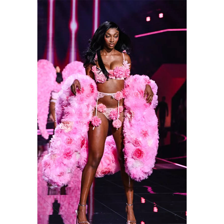 昨年に引き続き、今年のヴィクトリアズ・シークレット・ファッションショーもサプライズに満ちたステージとなった。なかでも注目を集めたのは、23歳のアメリカ人バスケットボール選手、エンジェル・リースだ。彼女はピンクの花々をあしらったレースのセットアップ姿で観客を魅了し、ヴィクトリアズ・シークレットのランウェイを歩く初めてのプロアスリート女性として、人々の記憶に強く刻まれた。また、ヴィクトリアズ・シークレットはプレスリリースで「エンジェルの卓越した運動能力と、スポーツやファッション、文化、そして世界中の女性たちに与える影響力は、ヴィクトリアズ・シークレットのファッションショーが持つ象徴的で大胆な力を如実に物語っている」と強調した。