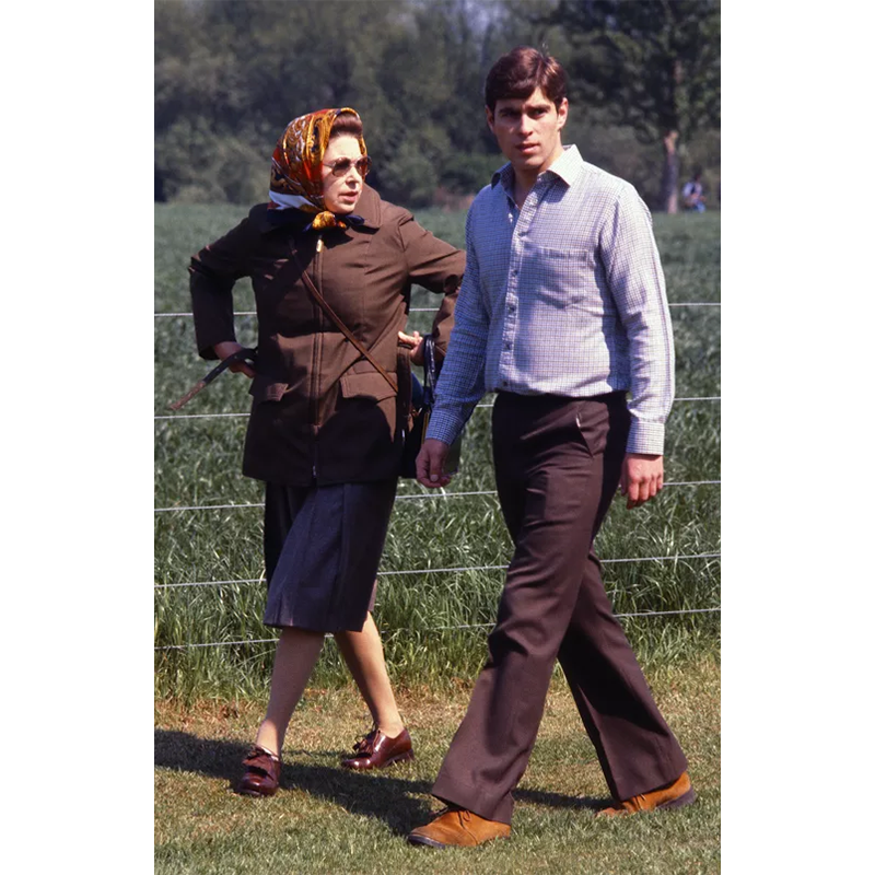アンドルー王子とエリザベス女王、1973年、グロスターシャー州で行われた馬術競技大会「バドミントン・ホース・トライアルズ」。