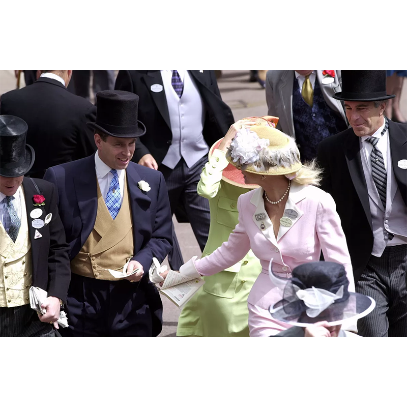 アンドルー王子とジェフリー・エプスタイン、2000年6月22日、イングランド・アスコットにあるロイヤルアスコット競馬場にて。右はジェフリー・エプスタイン。