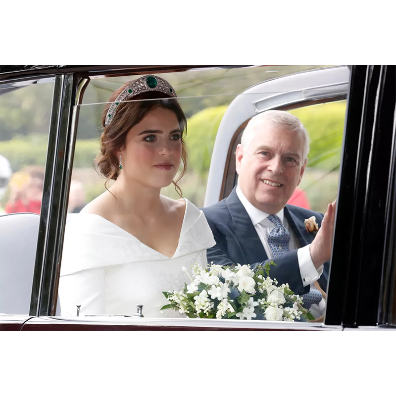 アンドルー王子とユージェニー王女、2018年10月12日、ウィンザーのセント・ジョージ礼拝堂で行われたユージェニー王女の結婚式当日。