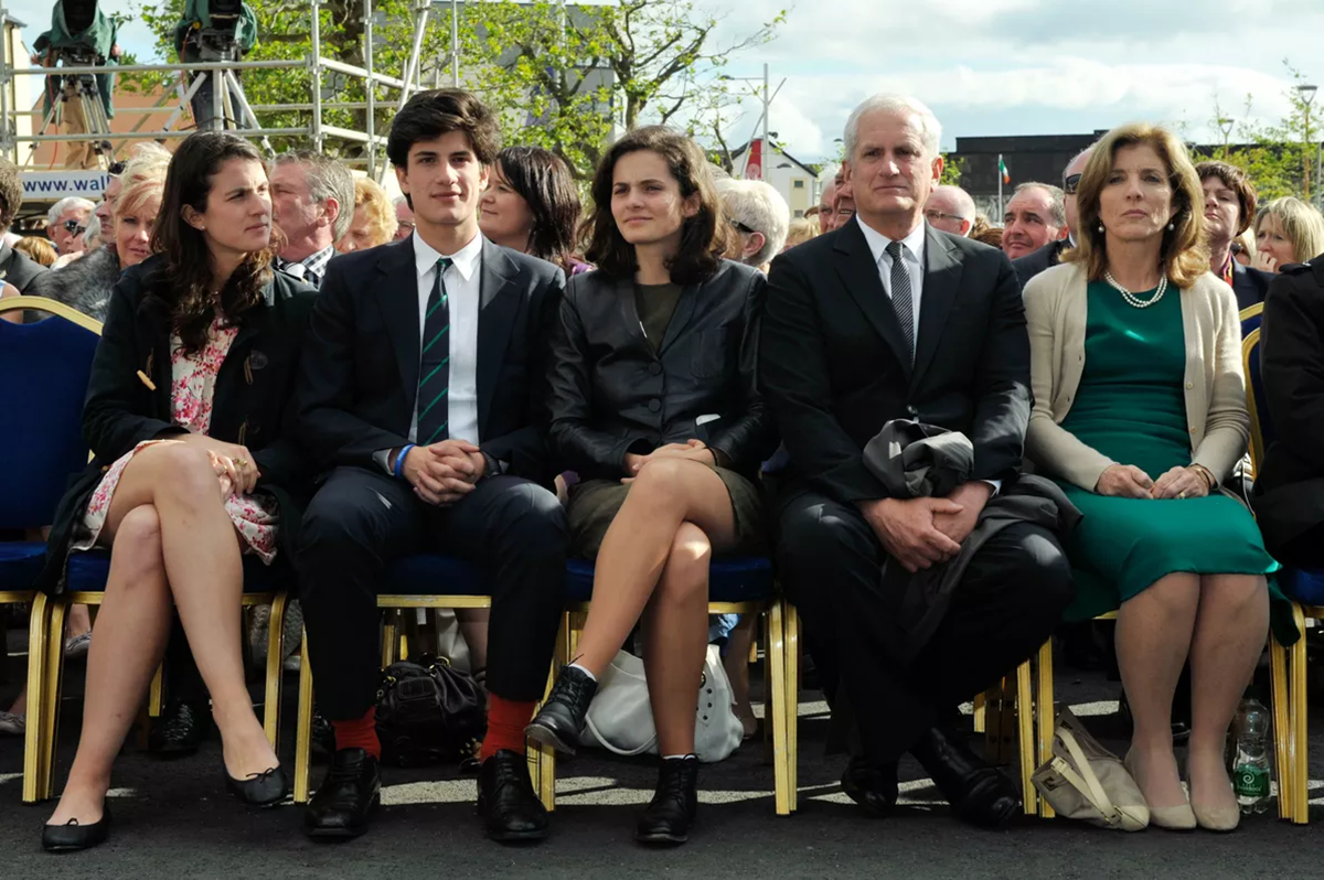 タチアナ、ジャック、ローズ・シュロスバーグ夫妻と、両親のエドウィン・シュロスバーグとキャロライン・ケネディが、家族の追悼式に出席した。(2013年6月22日)photography: Clodagh Kilcoyne / Getty Images