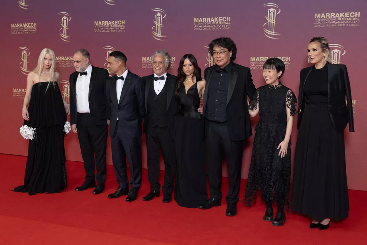 審査員メンバー:アニャ・テイラー=ジョイ、カリム・アイノズ、ペイマン・モアディ、ハキム・ベラベス、ジェナ・オルテガ、ポン・ジュノ、セリーヌ・ソン、ジュリア・デュクルノー。(2025年11月28日、マラケシュ)photography: Berzane Nasser/ABACA