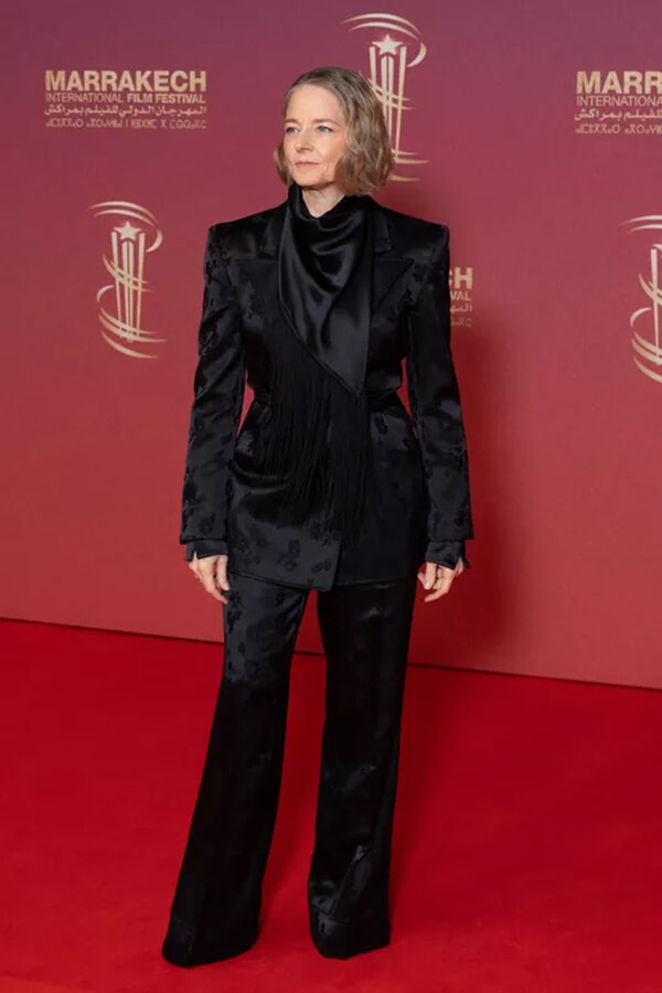 その夜のドレスコードは黒? マラケシュ国際映画祭のオープニングを彩った華やかなレッドカーペットは、まさにそれを物語っているかのようだった。11月28日(金)に行われた第22回目となるこのイベントのオープニングセレモニーには、多くの映画スターが集結。その大半が、シックでエレガントな”オールブラック”の装いをまとっていた。ジョディ・フォスターは、サテンのように艶めく生地で仕立てられた豪華なスーツに身を包み、カメラマンたちの前に姿を見せた。