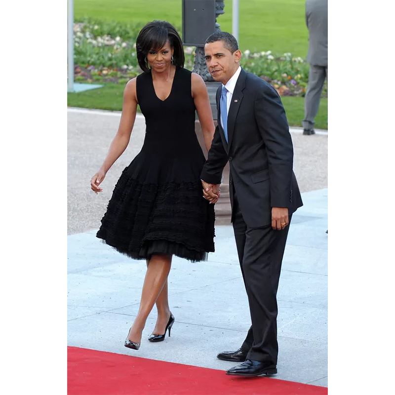2009年のNATO首脳会議に出席するため、ドイツ・バーデン=バーデンに到着したバラク・オバマ元米大統領とミシェル・オバマ夫人。(2009年4月3日)