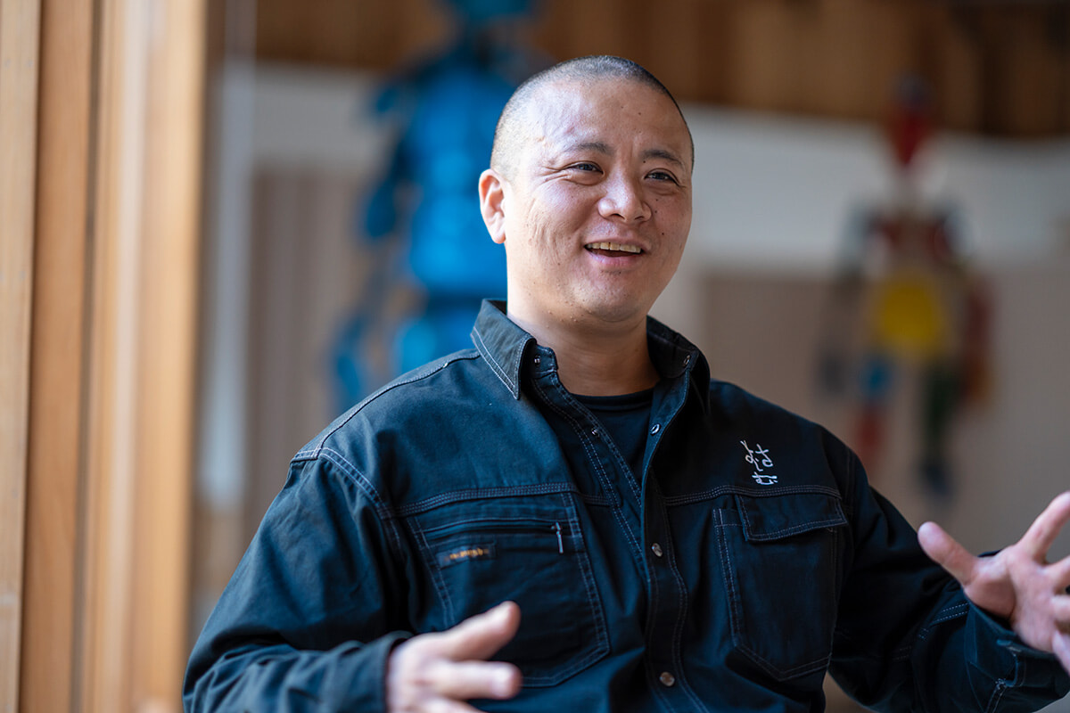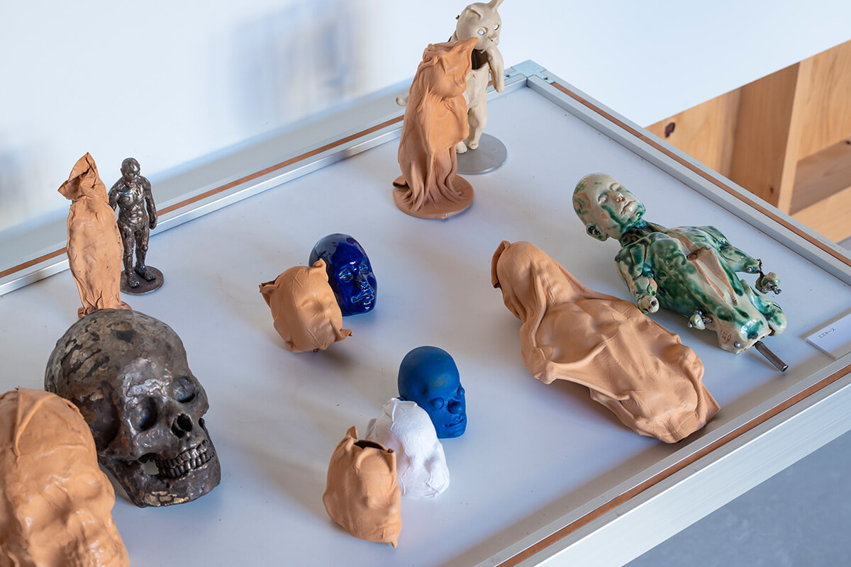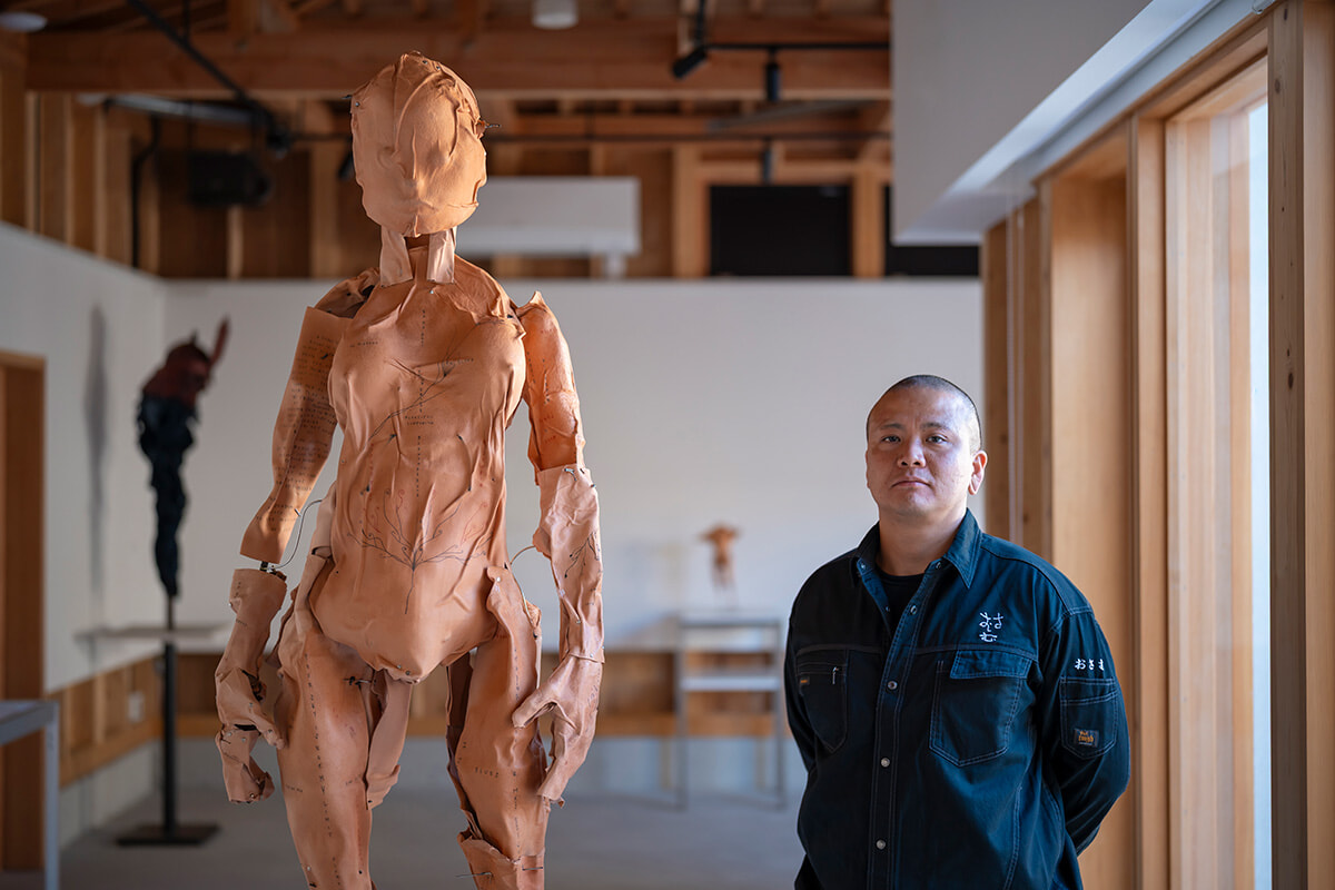 高田さんは、特撮ヒーローやアニメのフィギュアが好きだった子ども時代を経て、現在は主に金属に陶や石を組み合わせた人体彫刻を制作している。彼は、最初にL-AIR VILLAを訪れた時のことを、こう振り返る。「金属を溶接する工具や重い器具などを、隣市の自宅から2トントラックで3往復して搬入しました(笑)。一方で、ペアとなったフェンクルさんは、かばんひとつでやってきましたね」