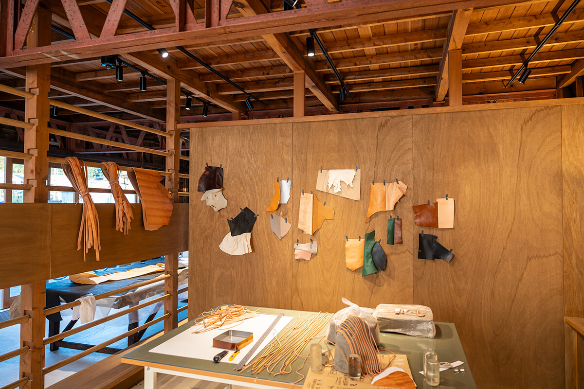 24時間作業が可能な制作スタジオ。近隣のタンナーから提供される革素材は自由に使用可能。写真は、2025年10月から12月に滞在したアーティストの作業場所。