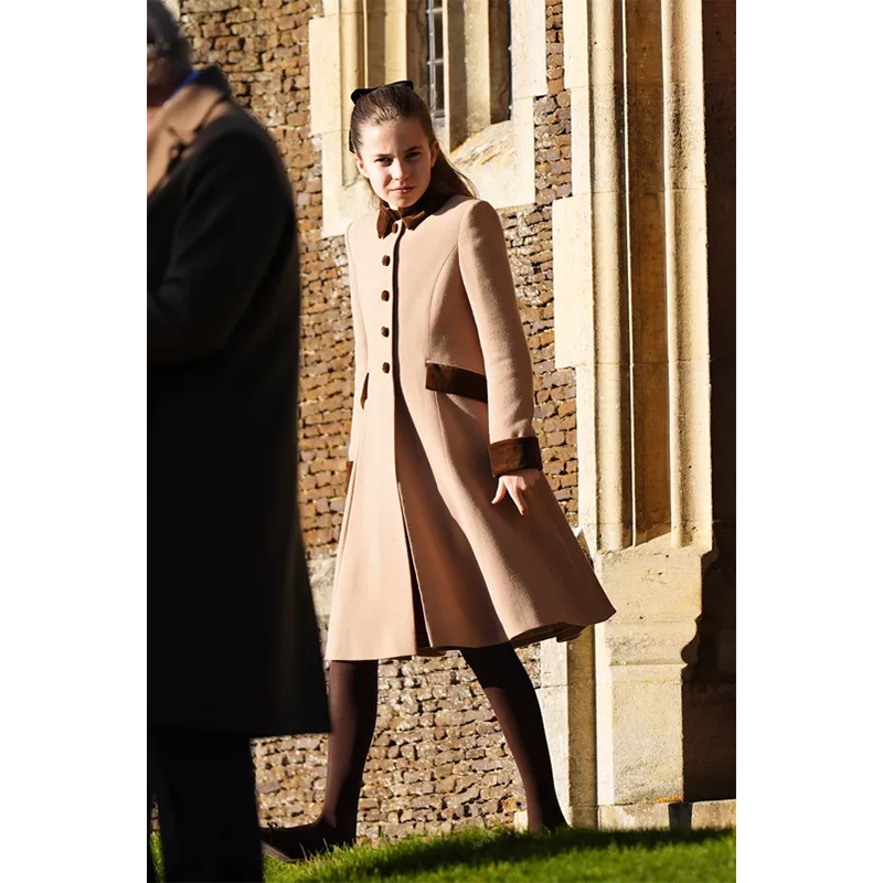 サンドリンガムの陽光を浴びながら、彼女は家族とともにこの場にいられる喜びをかみしめるように、満面の笑みを浮かべていた。この日は子どもたちの姿もひときわ注目を集め、なかでもシャーロット王女は、ポケットと袖口の折り返しがブラウンのベージュのコート姿で印象的だった。10歳のシャーロット王女は、集まった人々から贈られたプレゼントを受け取る様子も目撃され、鮮やかな赤い花束を手にする場面も見られた。一方、この日はジョージ王子がやや控えめな様子だったのに対し、弟のルイ王子はスーツを着こなし、威厳と優雅さを漂わせていた。