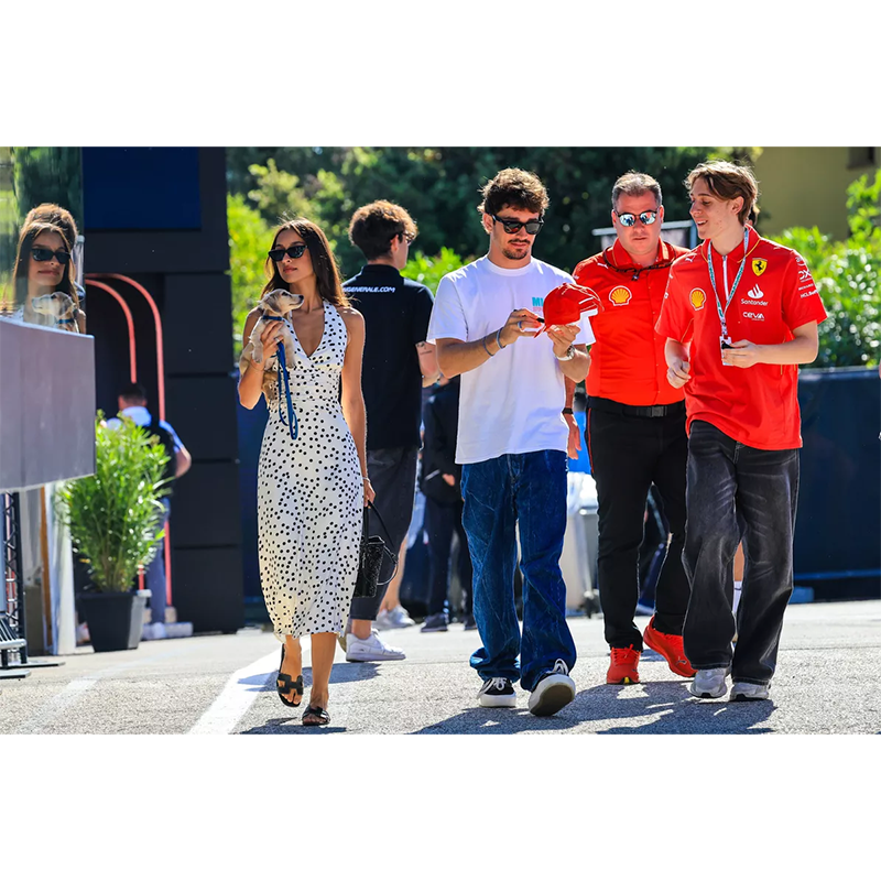 アレクサンドラ・サン・ムルーとシャルル・ルクレール、イモラのアウトドロモ・エンツォ・エ・ディーノ・フェラーリ・サーキットで開催されたF1エミリア・ロマーニャグランプリにて。(イタリア、2024年5月18日)photography: Kym Illman / Getty Images