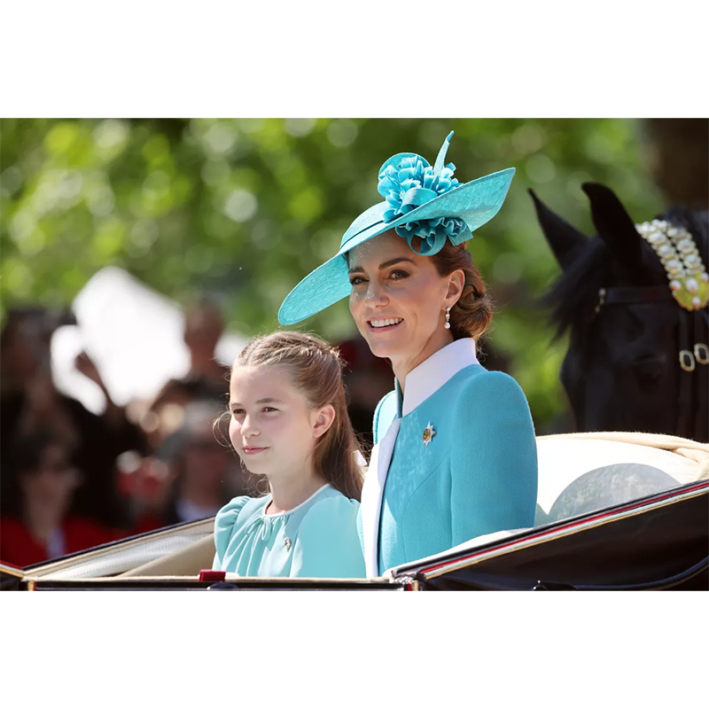 寛解の発表後、キャサリン皇太子妃は公務への復帰を段階的に進めた。彼女は、娘シャーロット王女とコーディネートしたドレスでトゥルーピング・ザ・カラーの式典に参加した。(ロンドン、2025年6月14日)