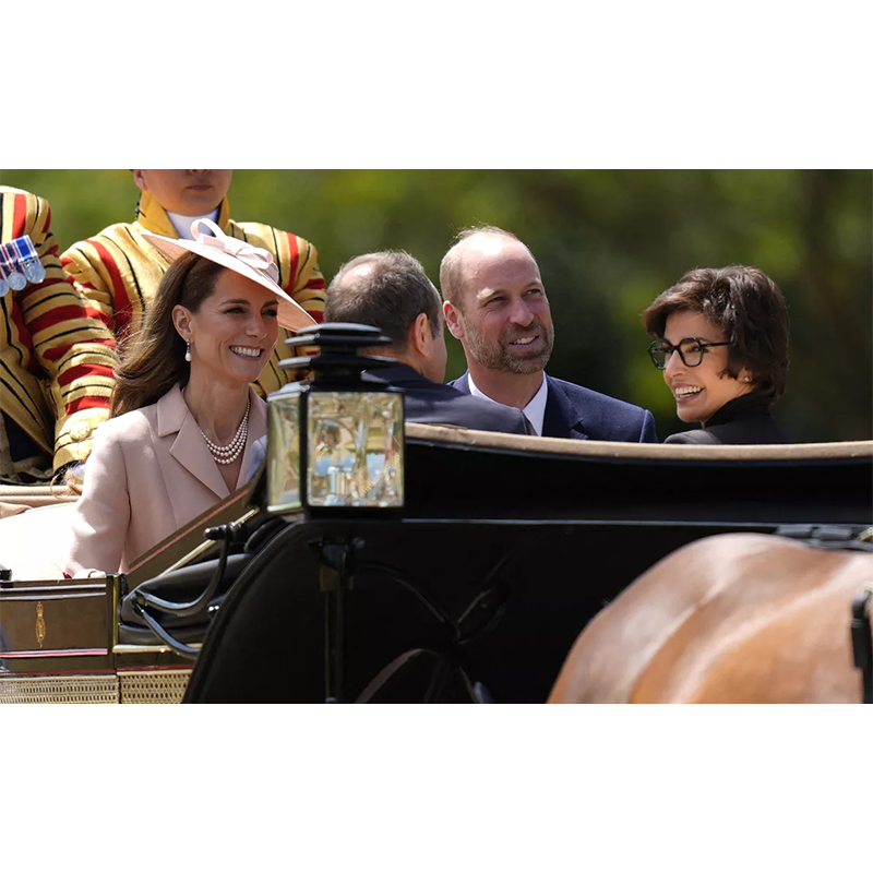ウィリアム皇太子夫妻は、馬車でのパレード中に、セバスチャン・ルコルニュおよびラシダ・ダティとも言葉を交わした。(ウィンザー、2025年7月8日)