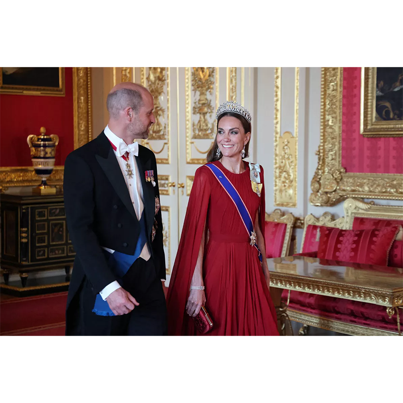 ウィリアム皇太子とキャサリン皇太子妃も、ウィンザー城でマクロン夫妻のために開かれた国賓晩餐会に出席した。(ウィンザー、2025年7月8日)