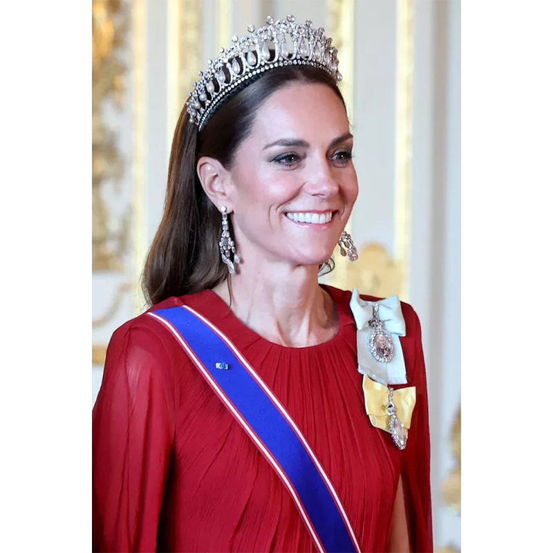 この夜、キャサリン皇太子妃は、ヴィクトリア女王のオリエンタル・サークレット・ティアラを初めて着用した。(ウィンザー、2025年12月3日)