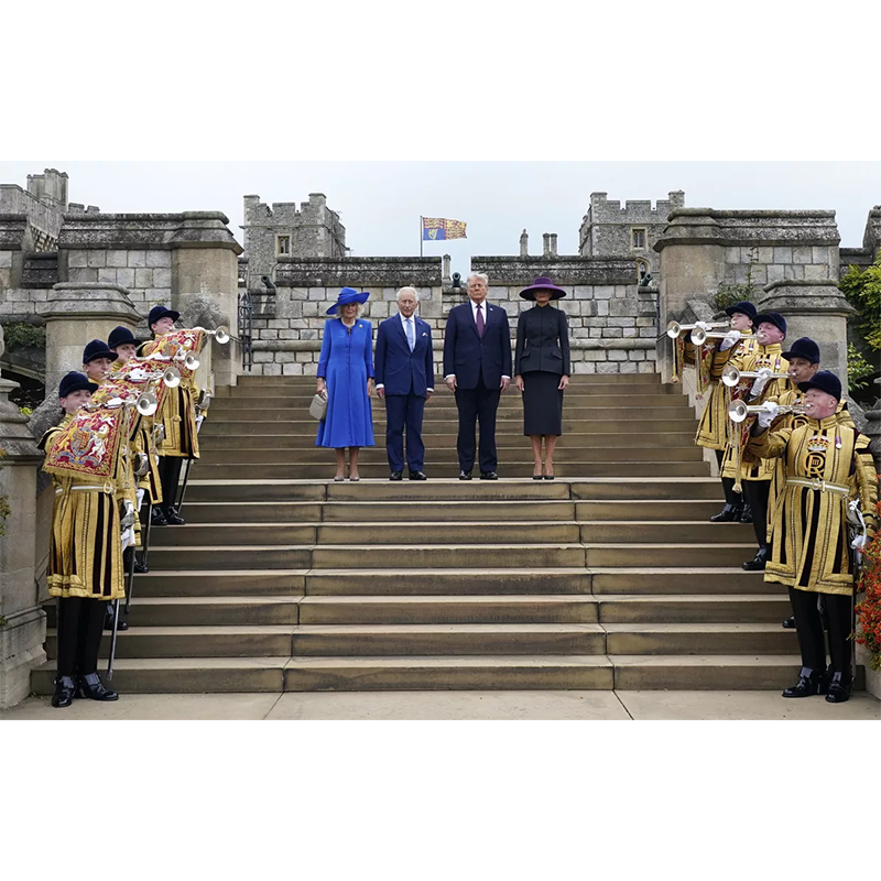 カミラ王妃とチャールズ3世は、ウィンザー城で行われた盛大な国賓晩餐会に、ドナルド・トランプ大統領とメラニア・トランプを招待した。(ウィンザー、2025年9月17日)