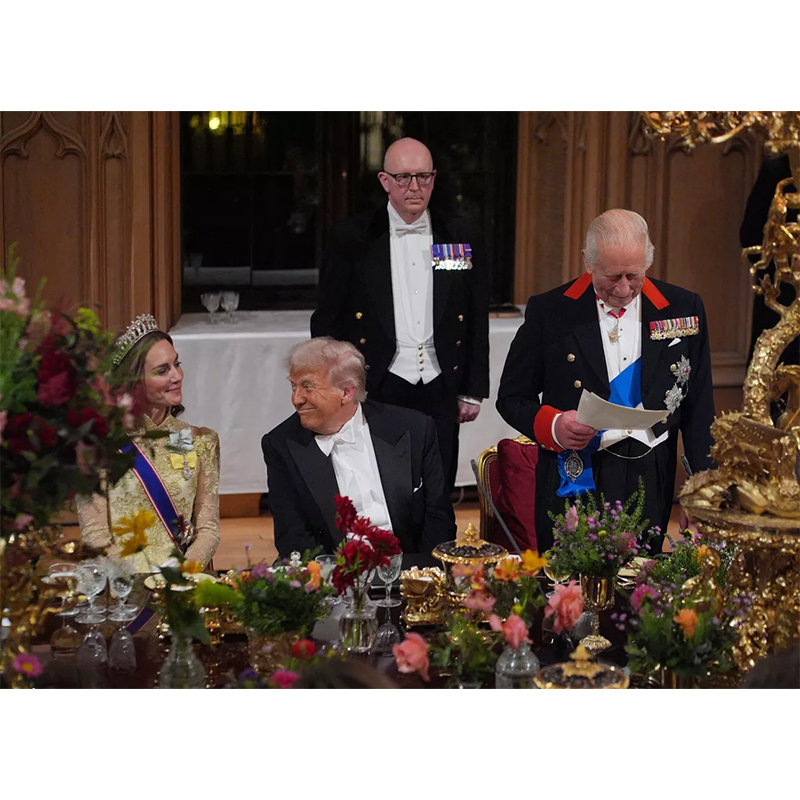 ドナルド・トランプ大統領は、ウィンザー城で行われた国賓晩餐会で、キャサリン皇太子妃に心を奪われた様子だった。(ウィンザー、2025年9月17日)